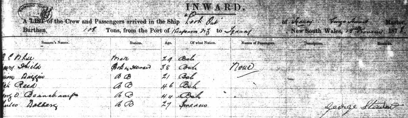 of Sydney, GEORGE STREETER ?? , MASTER, Burthen 108 Tons