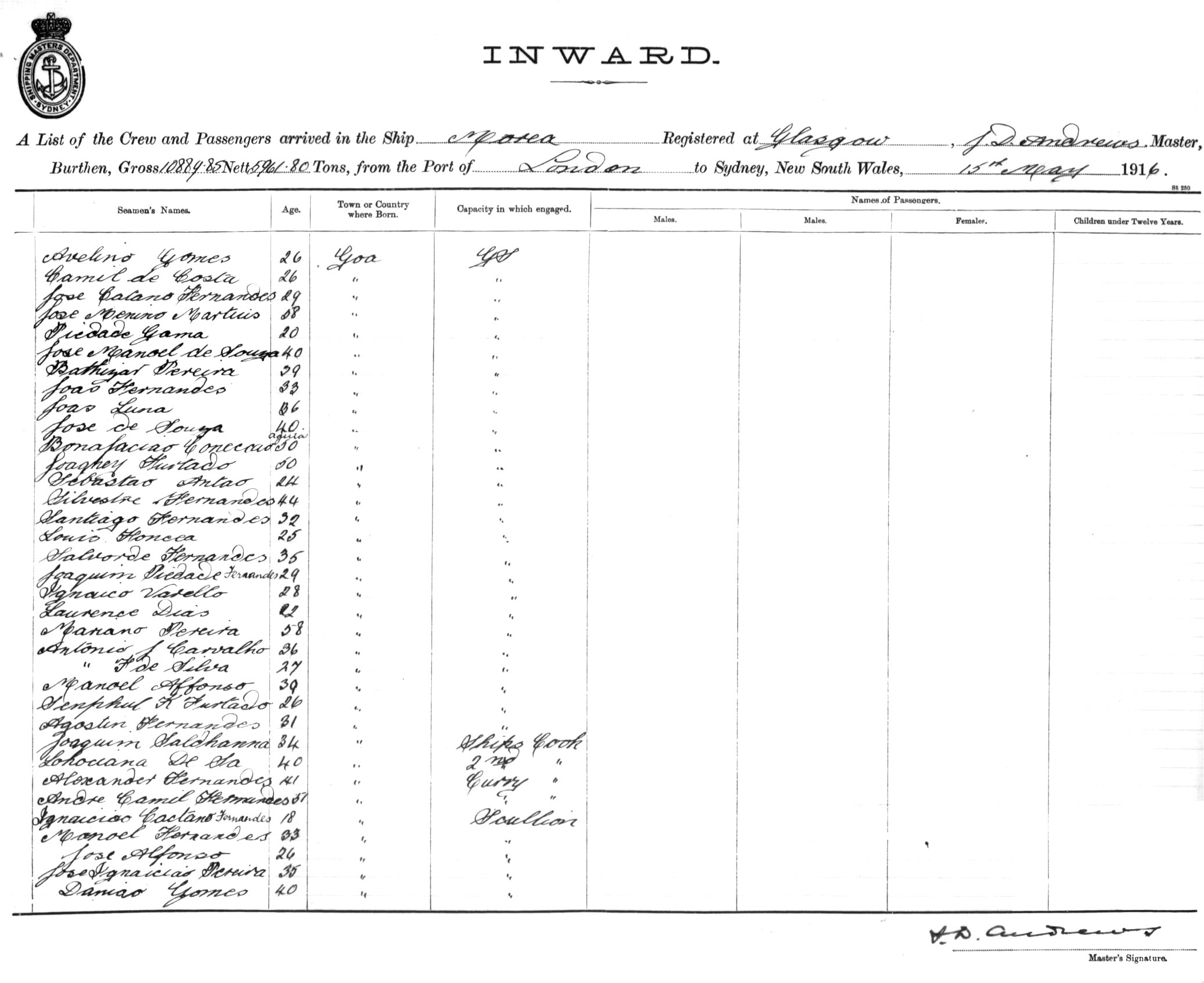 Source: State Records Authority of New South Wales: Shipping Master's Office; Passengers Arriving 1855 - 1922; NRS13278, [X411] reel 2092. Transcribed by Margaret Shand. Proofread by Lyn & Maurie.