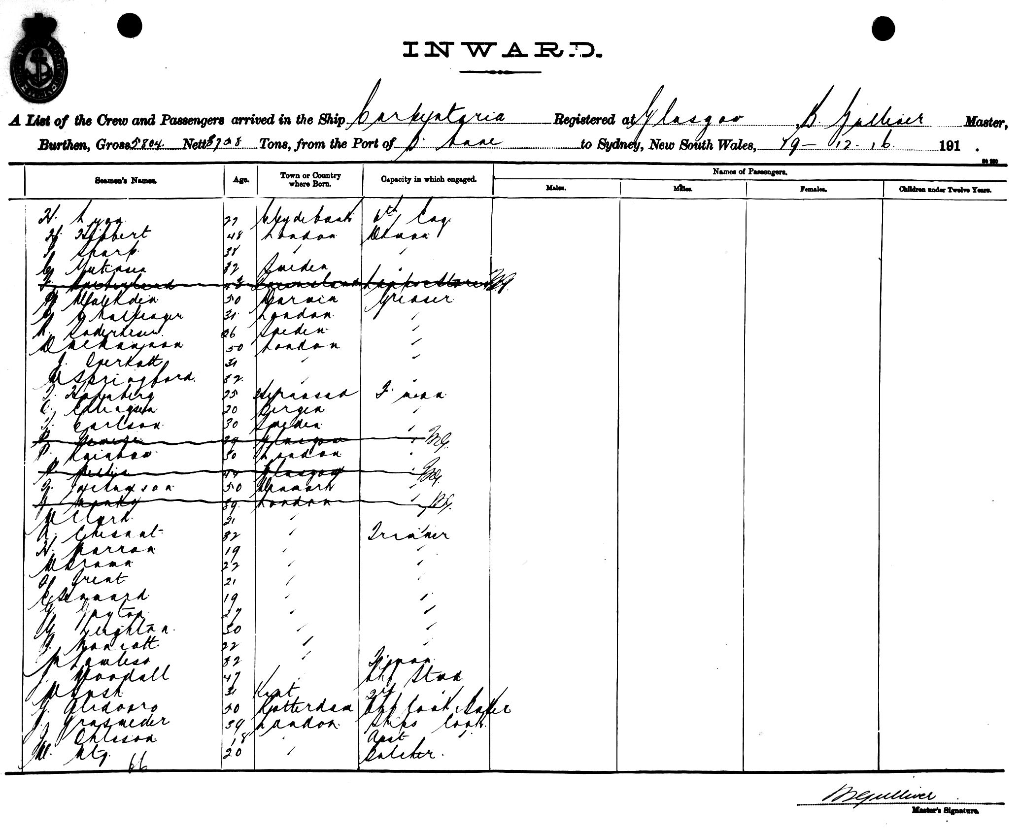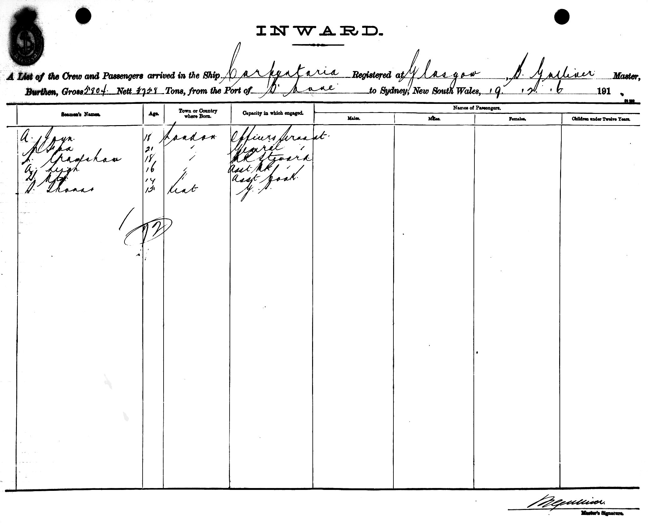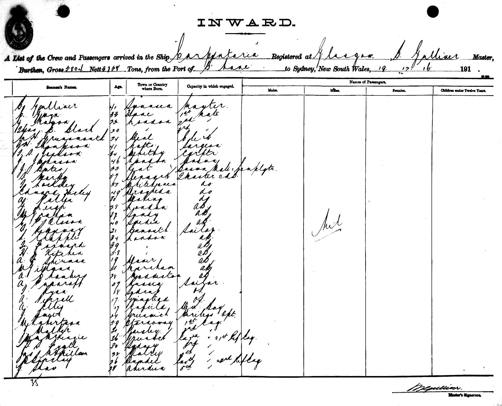 CARPENTARIAOF GLASGOW, B. GULLIVER, MASTER, BURTHEN 5804/3758 TONS FROM THE PORT OF BRISBANE TO SYDNEY, NEW SOUTH WALES, 19TH DECEMBER 1916 |