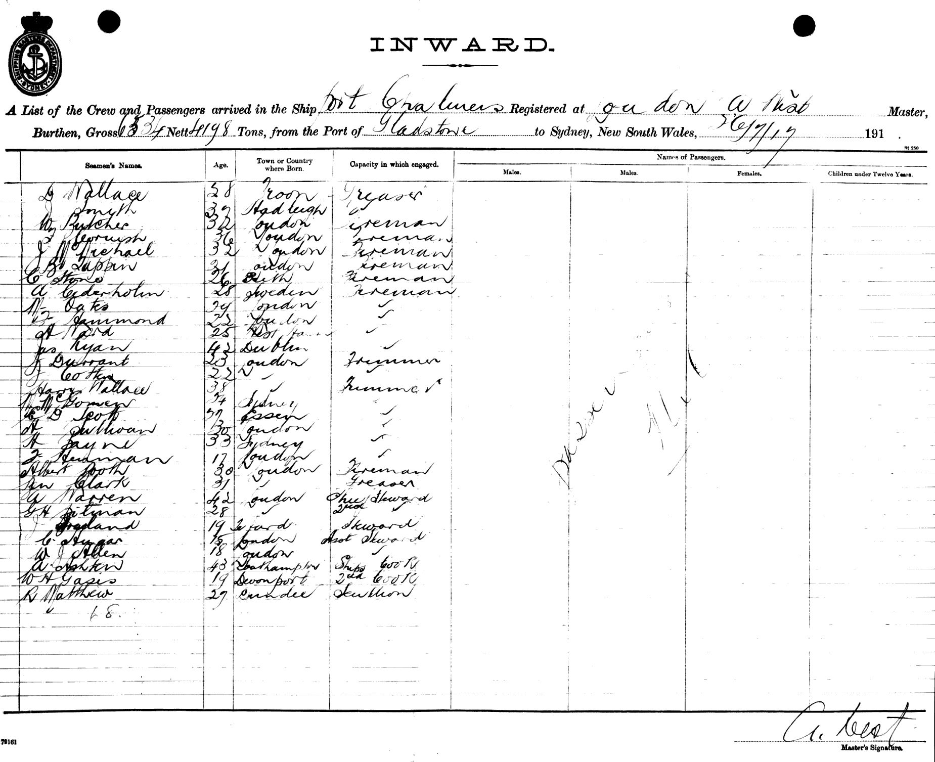 PORT CHALMERSOF LONDON, A. WEST, MASTER, BURTHEN 6534/4198 TONS FROM THE PORT OF GLADSTONE TO SYDNEY, NEW SOUTH WALES, 26TH JULY 1917 |