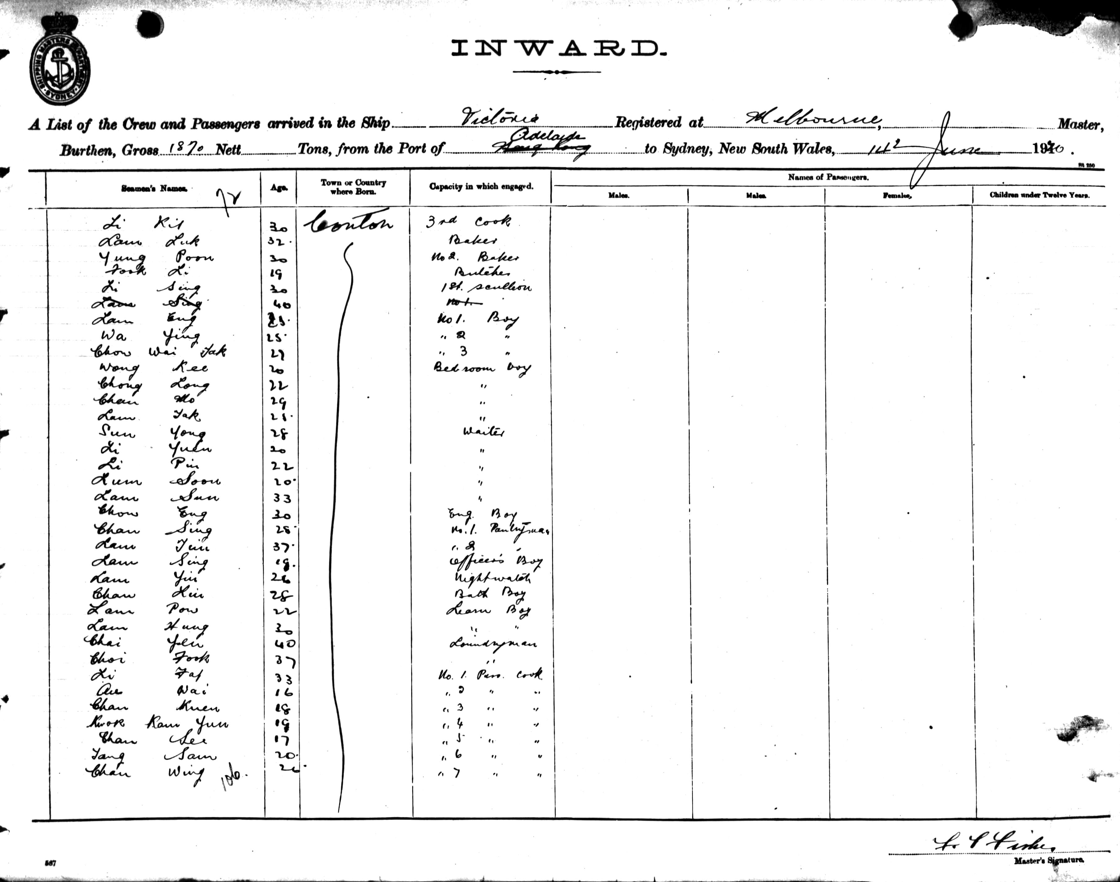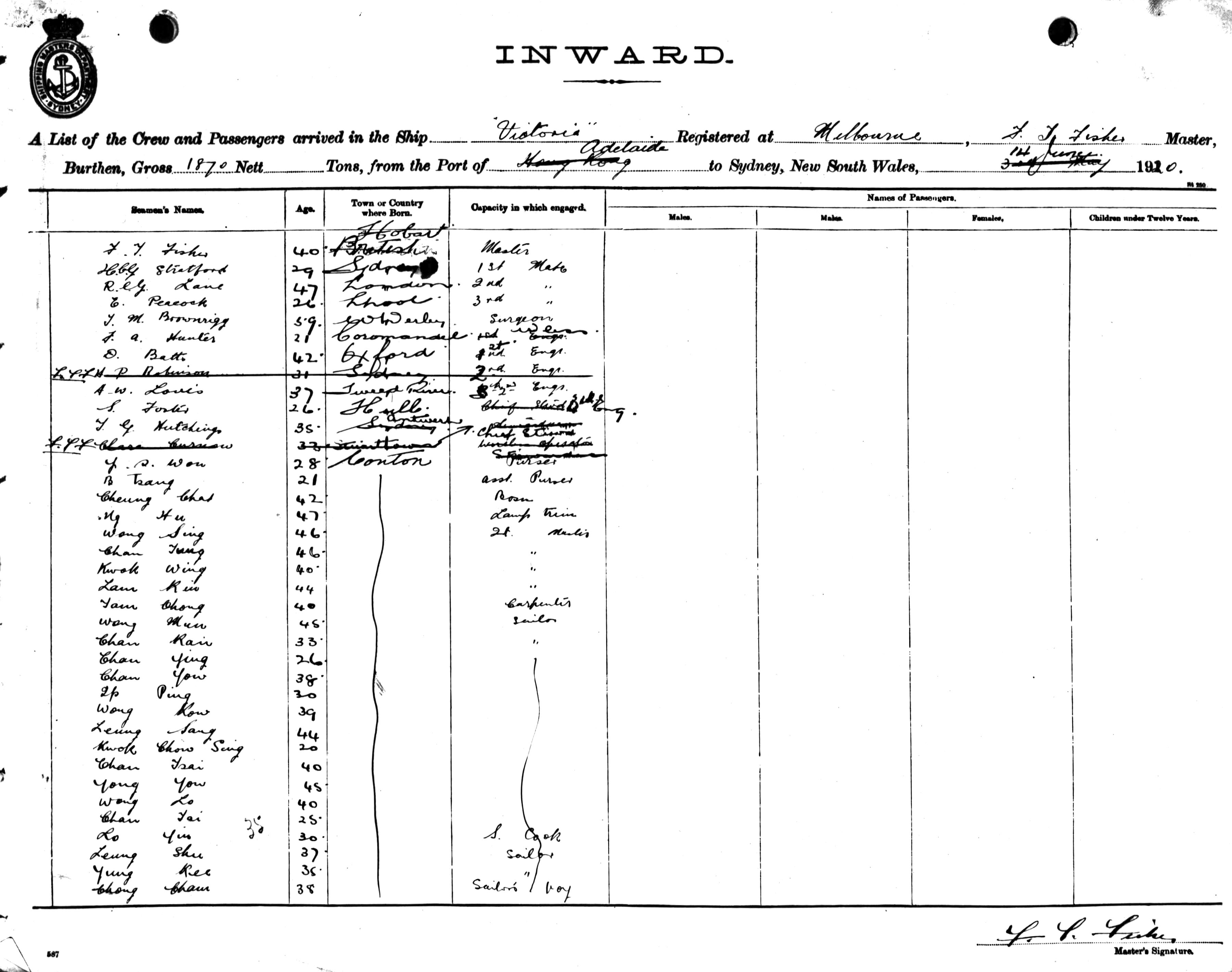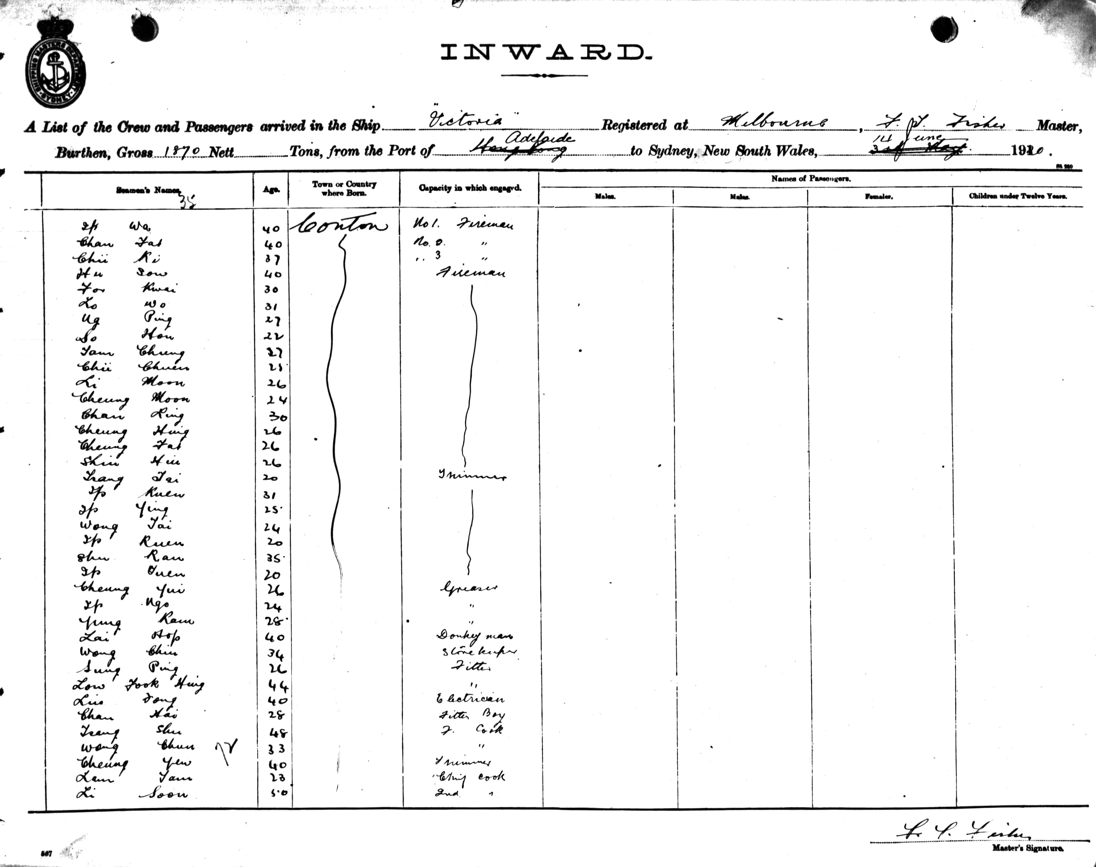 VICTORIAOF MELBOURNE, F. T. FISHER, MASTER, BURTHEN 1870 TONS FROM THE PORT OF ADELAIDE TO SYDNEY, NEW SOUTH WALES, 14TH JUNE 1920 |
