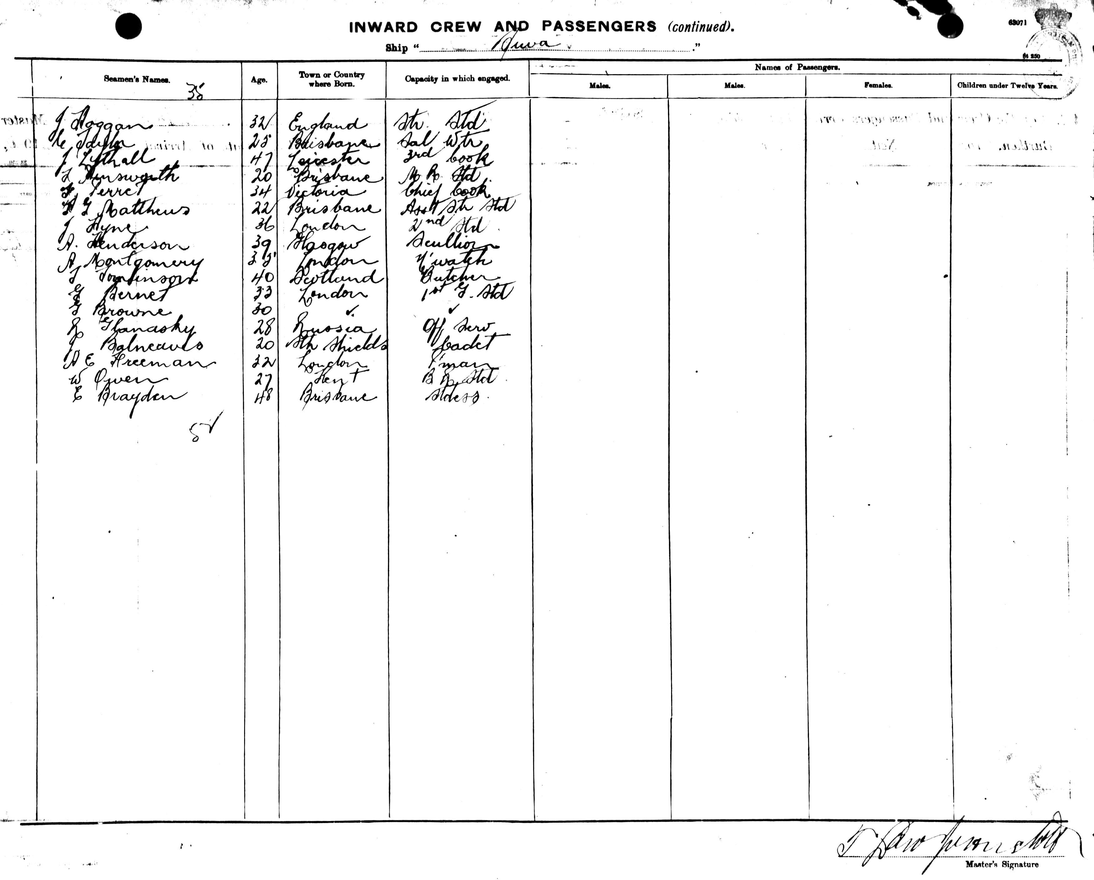 ASST. STEERAGE STEWARD |