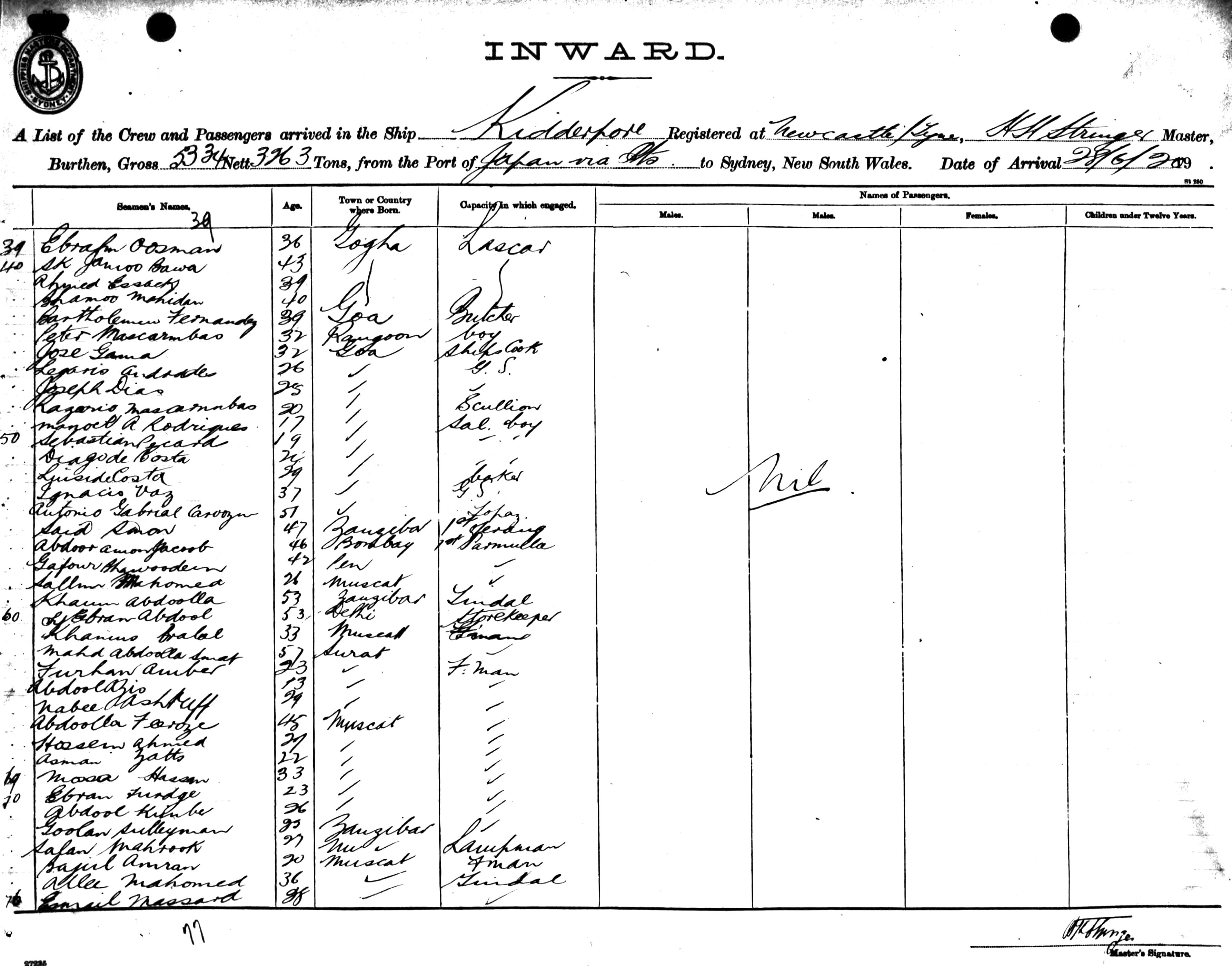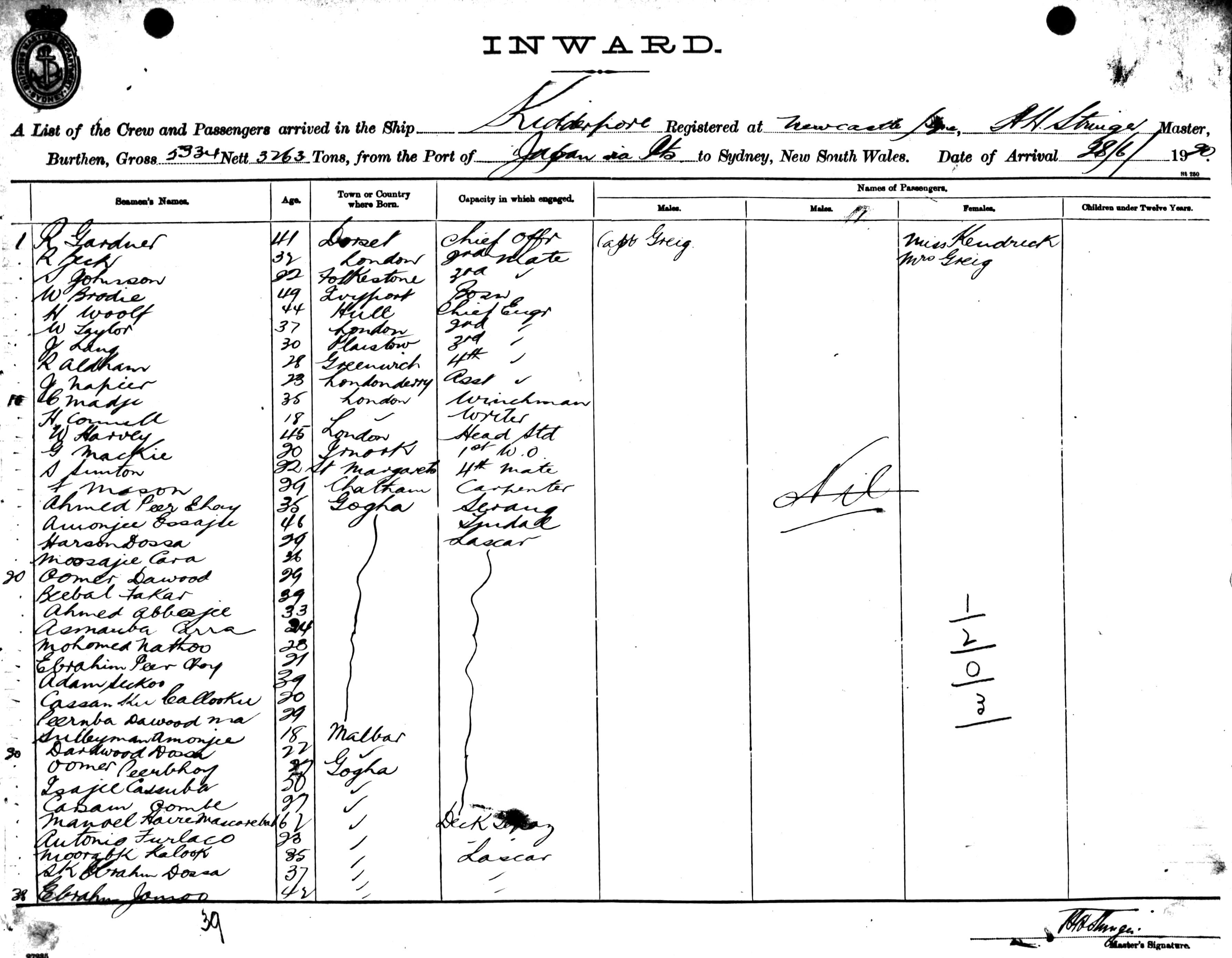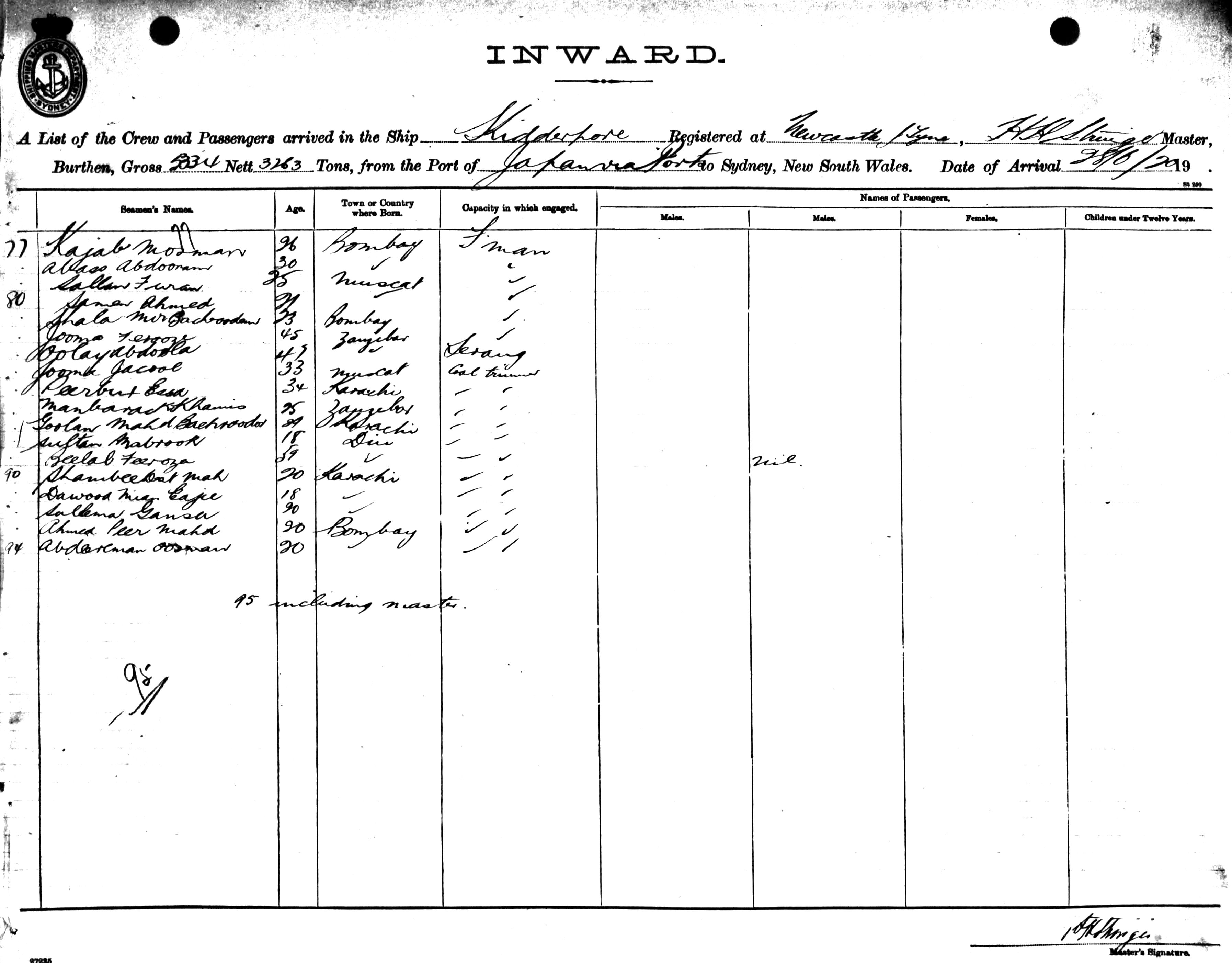 KIDDERPOREOF NEWCASTLE ON TYNE, R. H. STRINGER, MASTER, BURTHEN 53334/3263 TONS FROM THE PORT OF JAPAN via PORTS TO SYDNEY, NEW SOUTH WALES, 28TH JUNE 1920 |