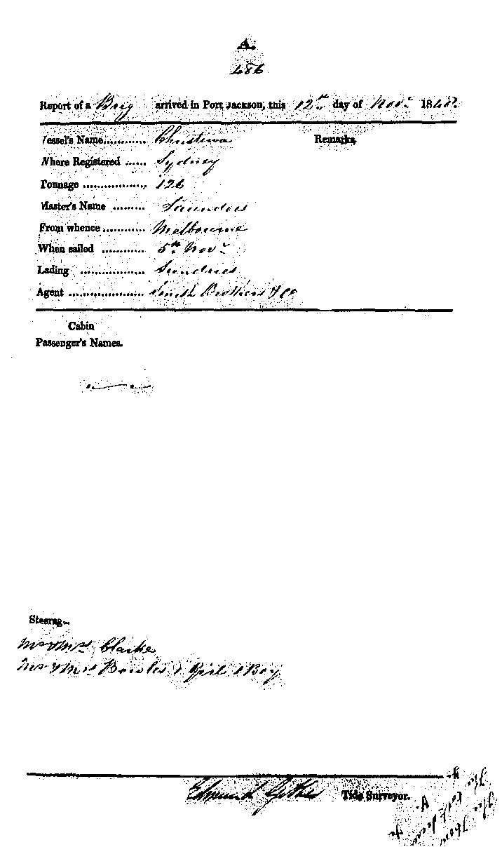 CHRISTINABRIG OF SYDNEY, SAUNDERS, MASTER, BURTHEN 126 TONS, FROM THE PORT OF MELBOURNE TO PORT JACKSON, NEW SOUTH WALES, 12TH NOVEMBER 1848 |
