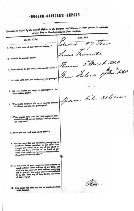 EDWARDSCHOONER, TONNAGE 87, MASTER TRUSCOTT, SAILED 2ND MARCH 1848 FROM WHENCE, SYDNEY ON A WHALING VOYAGE TO PORT JACKSON, 18TH JANUARY 1849 |
