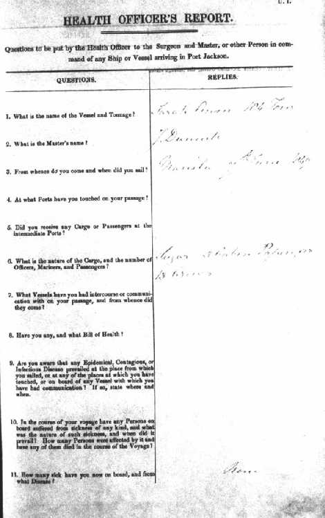 SARAH ANNSCHOONER, TONNAGE 184, MASTER DUNNET, SAILED 7TH JUNE 1849 FROM WHENCE, MANILLA TO PORT JACKSON, 3RD SEPT 1849 |