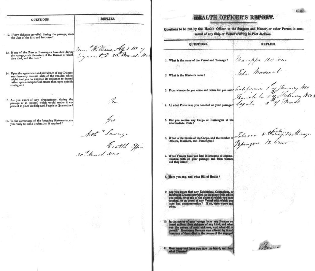 MAZEPPASHIP OF ADELAIDE, JOHN MORDAUNT, MASTER, BURTHEN 168 TONS, FROM THE PORT OF SAN FRANCISCO TO PORT JACKSON, NEW SOUTH WALES, 30TH MARCH 1850 |