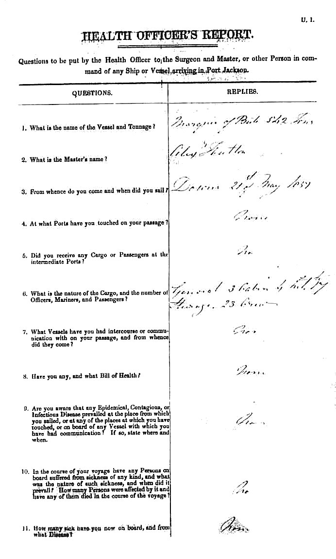 MARQUIS OF BUTESHIP OF LONDON, A. HATTEN, MASTER, BURTHEN 542 TONS FROM THE PORT OF LONDON TO PORT JACKSON, NEW SOUTH WALES, 4TH SEPTEMBER 1851 |