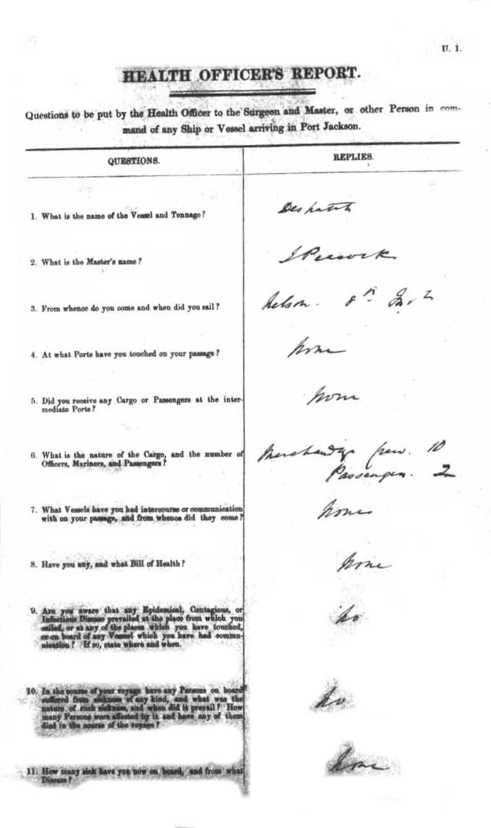 SCHOONER OF SYDNEY, J. PEACOCK, MASTER, BURTHEN 139 TONS FROM THE PORT OF NELSON, N.Z. TO PORT JACKSON, NEW SOUTH WALES 29TH JULY 1852