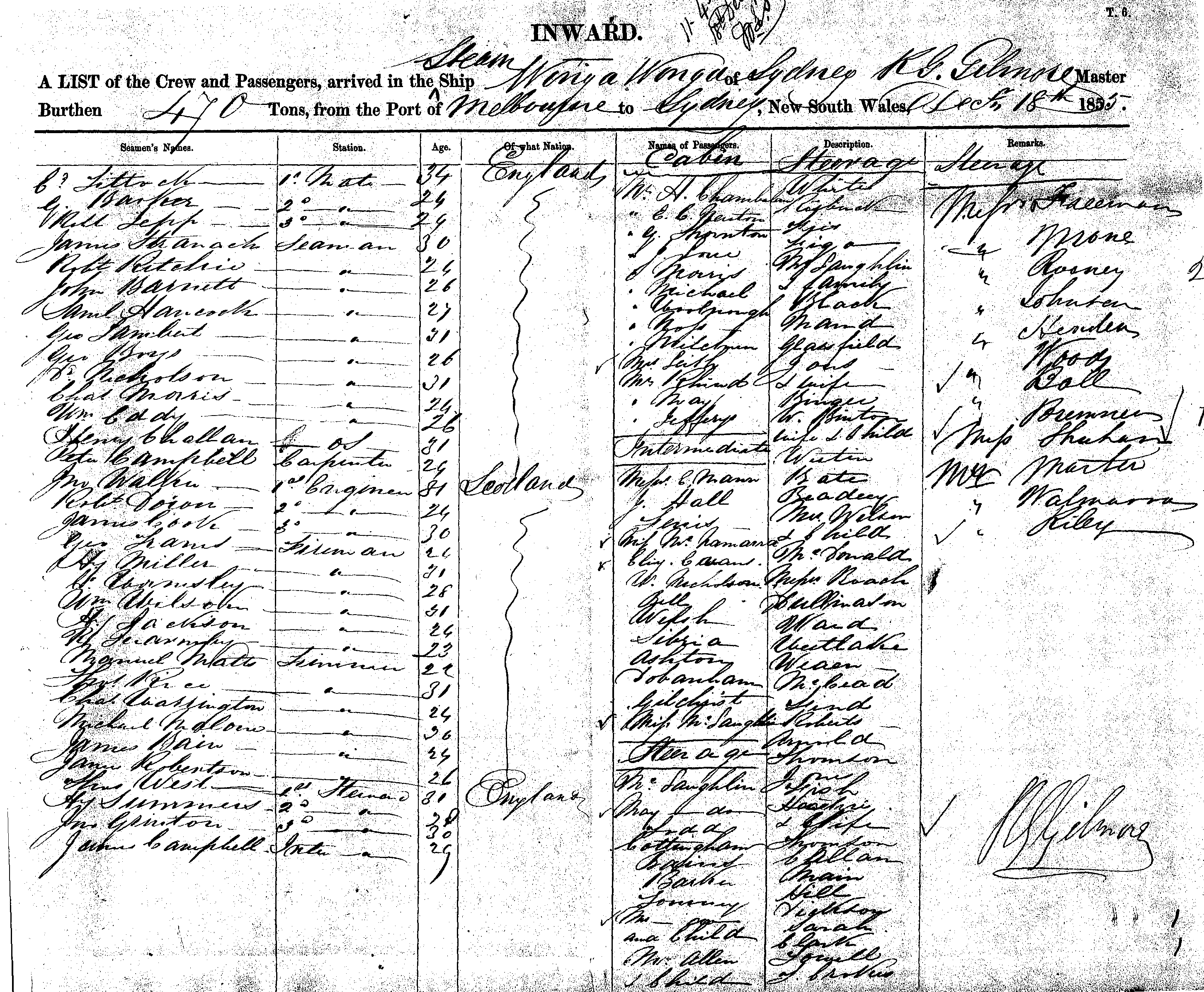 WONGA WONGASTEAM SHIP OF SYDNEY, R. G. GILMORE MASTER FROM THE PORT OF MELBOURNE TO SYDNEY NEW SOUTH WALES, 18TH DECEMBER, 1855 |