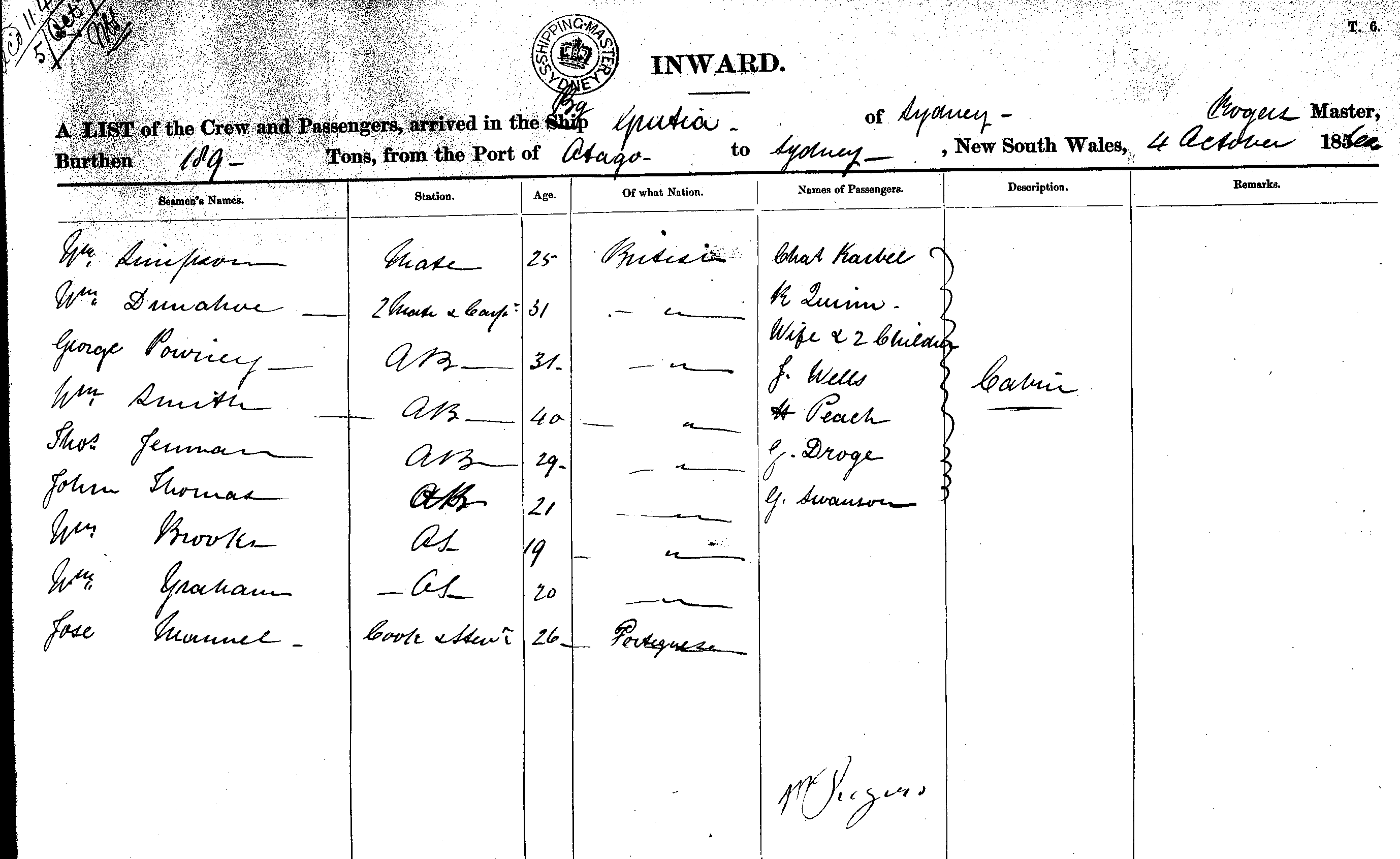 GRATIABRIG. OF SYDNEY, M. ROGERS, MASTER, BURTHEN 189 TONS FROM THE PORT OF OTAGO TO SYDNEY, NEW SOUTH WALES, 4TH OCTOBER 1860 |
