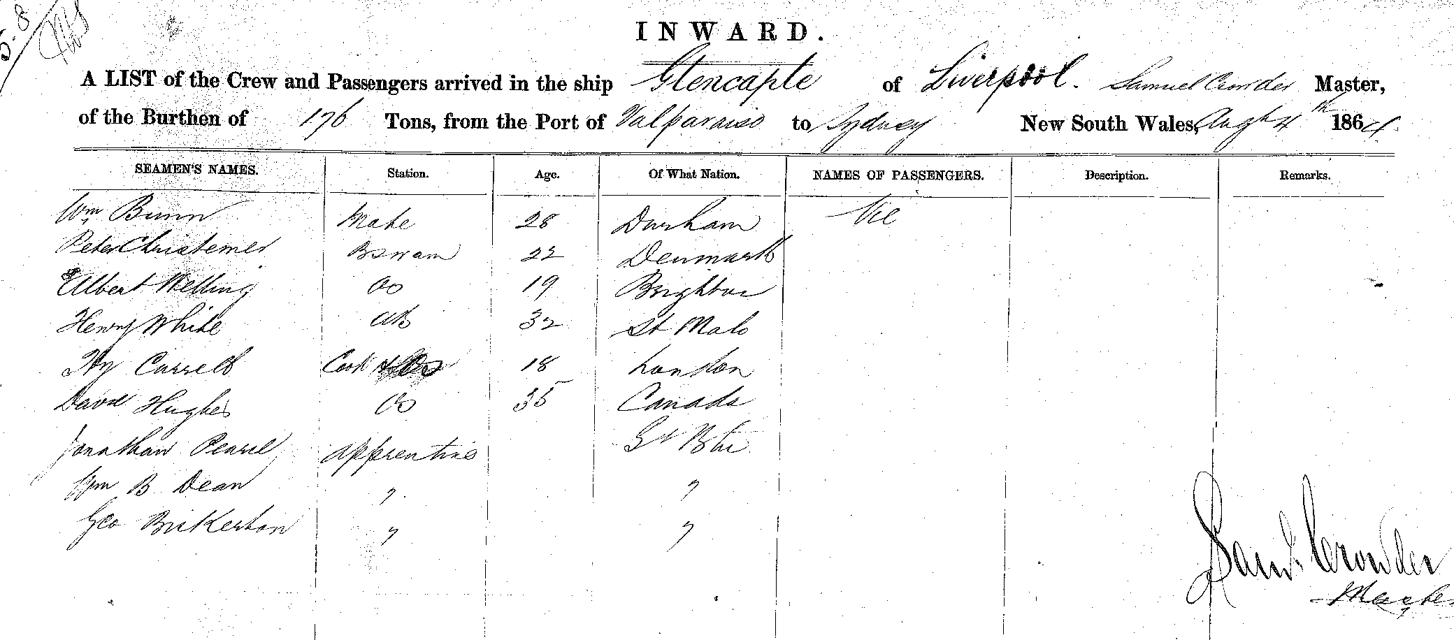 FROM THE PORT OF VALPARAISO TO SYDNEY 4TH AUGUST 1864