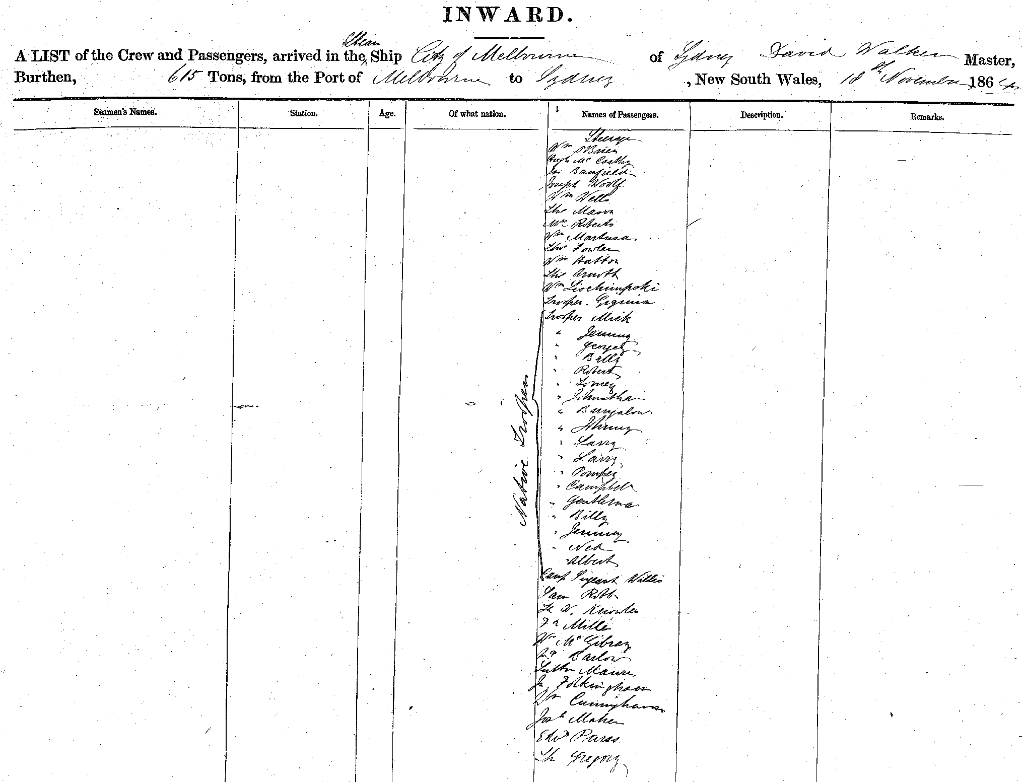 CITY OF MELBOURNEOF SYDNEY, DAVID WALKER, MASTER, BURTHEN 615 TONS FROM THE PORT OF MELBOURNE TO SYDNEY, NEW SOUTH WALES, 18TH NOVEMBER 1864 |