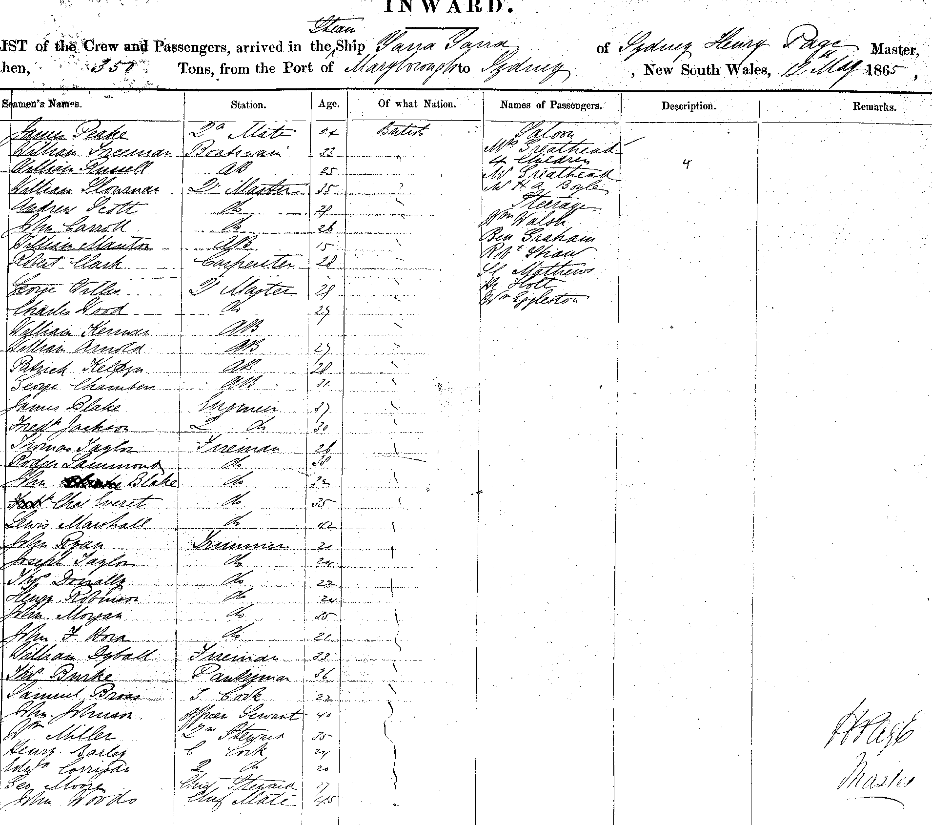 YARRA YARRAS. S. OF SYDNEY, HENRY PAGE, MASTER, BURTHEN 350 TONS FROM THE PORT OF MARYBOROUGH TO SYDNEY, NEW SOUTH WALES, 12TH MAY 1865 |