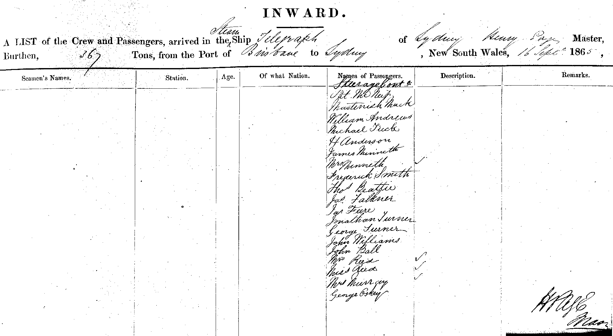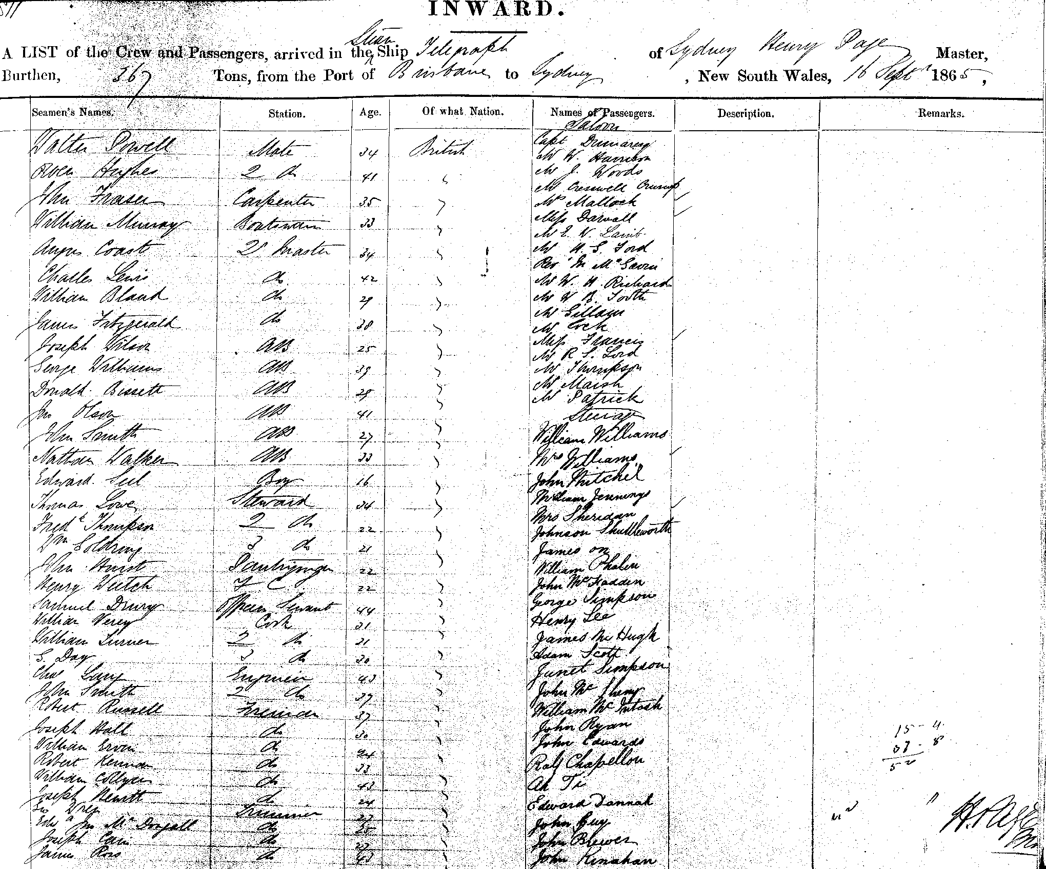 FROM THE PORT OF BRISBANE TO SYDNEY, NEW SOUTH WALES, 16 SEPT 1865