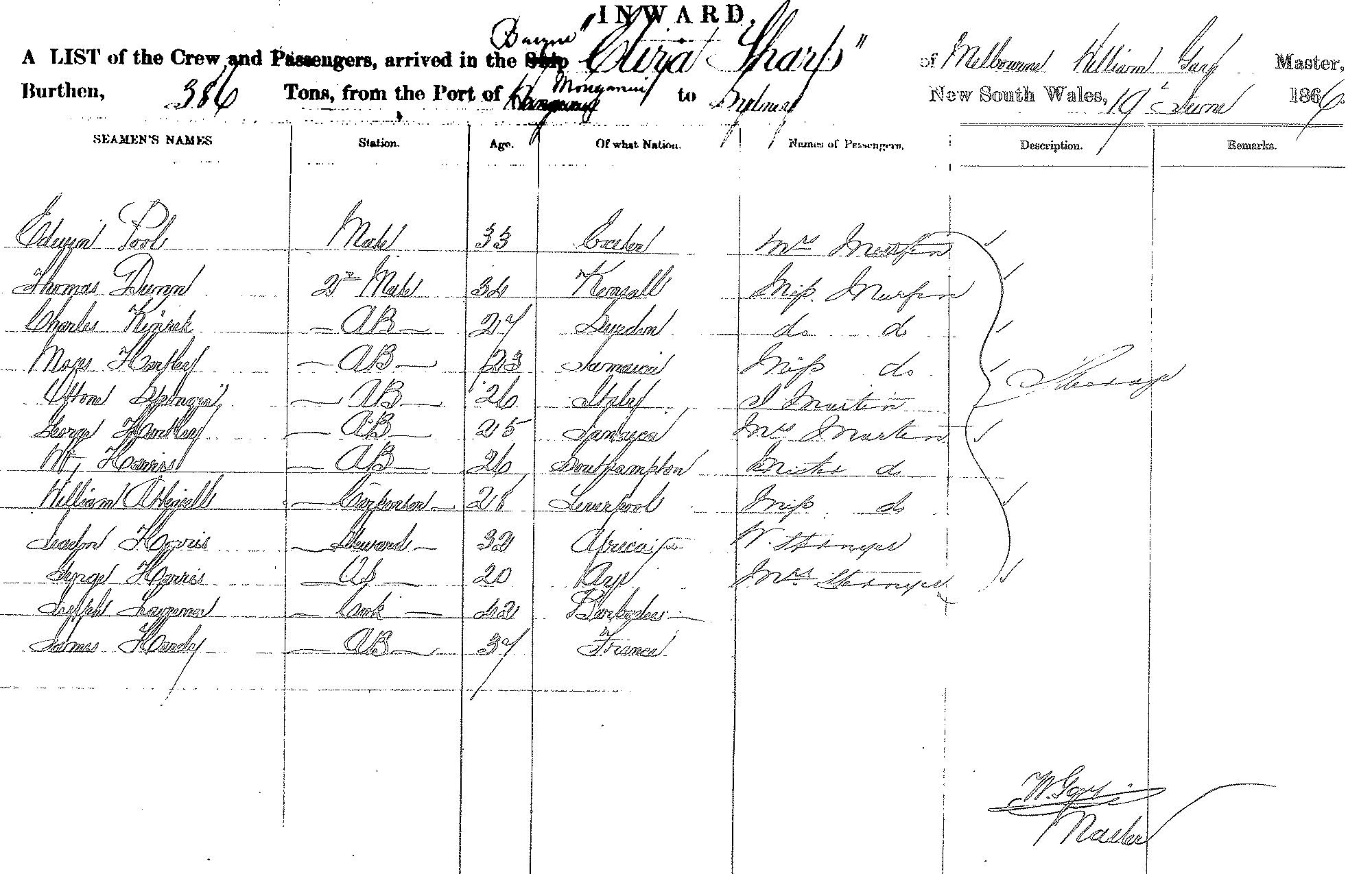 ELIZA SHARPBARQUE, OF MELBOURNE, WILLIAM GAY, MASTER, BURTHEN 386 TONS FROM THE PORT OF MAUNGANUI TO SYDNEY, NEW SOUTH WALES, 19TH JUNE 1866 |
