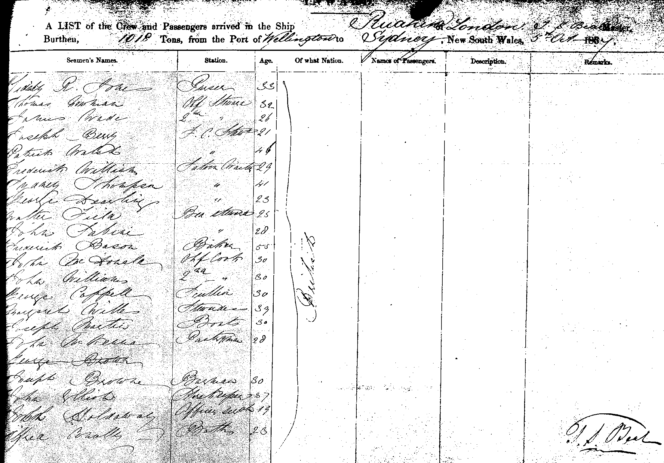 RUAHINEOF LONDON, T. S. BEAL, MASTER, BURTHEN 1018 TONS FROM THE PORT OF WELLINGTON TO SYDNEY, NEW SOUTH WALES, 5TH OCTOBER 1867 |