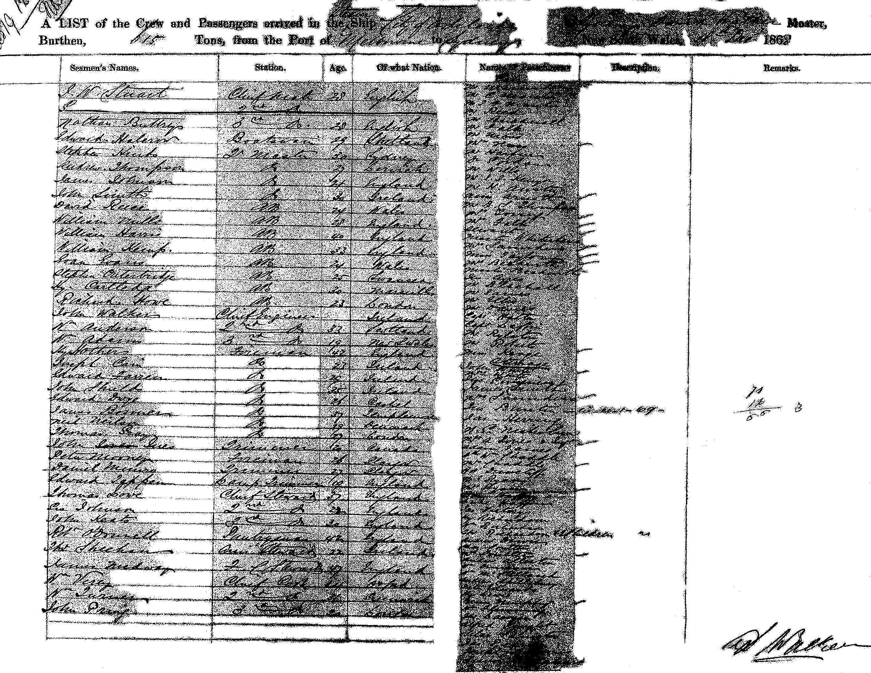 CITY OF ADELAIDESTEAMSHIP, OF SYDNEY, D. WALKER, MASTER, BURTHEN 615 TONS FROM THE PORT OF MELBOURNE TO SYDNEY, NEW SOUTH WALES, 18TH DECEMBER, 1868 |