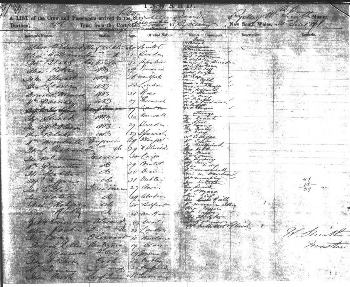 QUEENSLANDSTEAMSHIP of SYDNEY, WILLIAM SMITH, Master. Burthen 286 Tons from the Ports of ROCKHAMPTON, GLADSTONE, MARYBOROUGH &BRISBANE to SYDNEY, NEW SOUTH WALES, 21st June, 1871. |