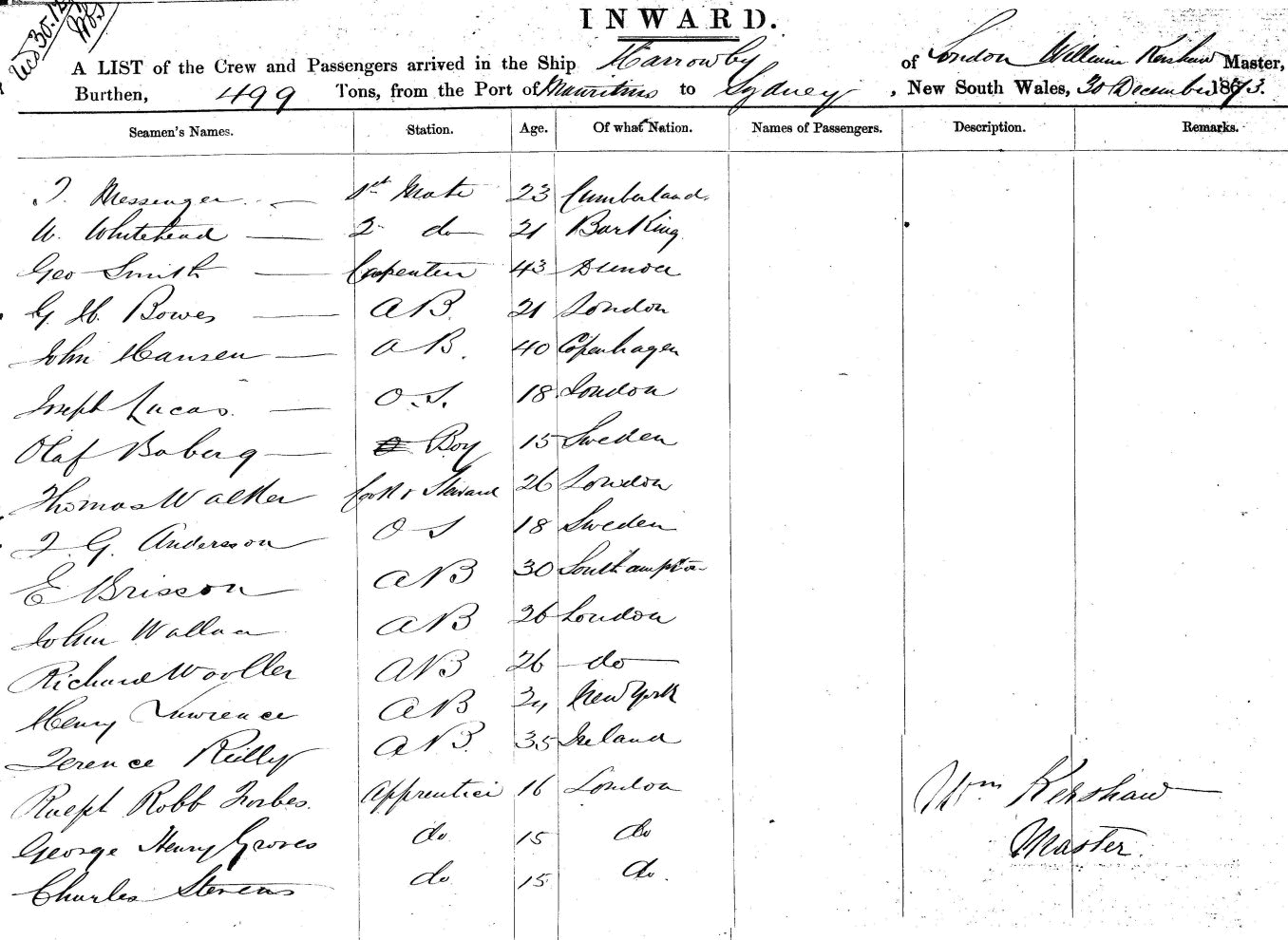 RENSHAW WILLIAM CAPTAIN     CREW