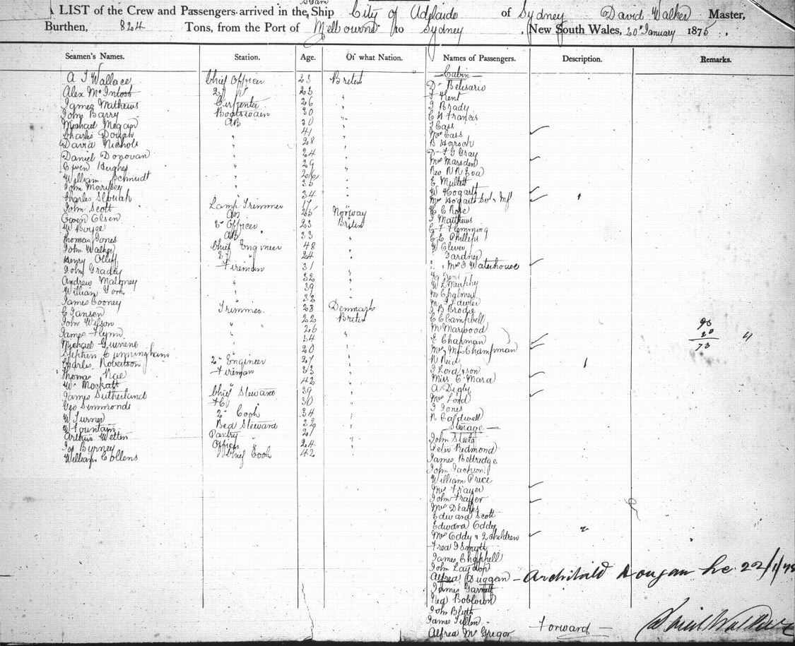 CITY OF ADELAIDEOF SYDNEY, DAVID WALKER, MASTER, BURTHEN 824 TONS FROM THEPORT OF MELBOURNE TO SYDNEY, NEW SOUTH WALES, 20TH JANUARY, 1875 |