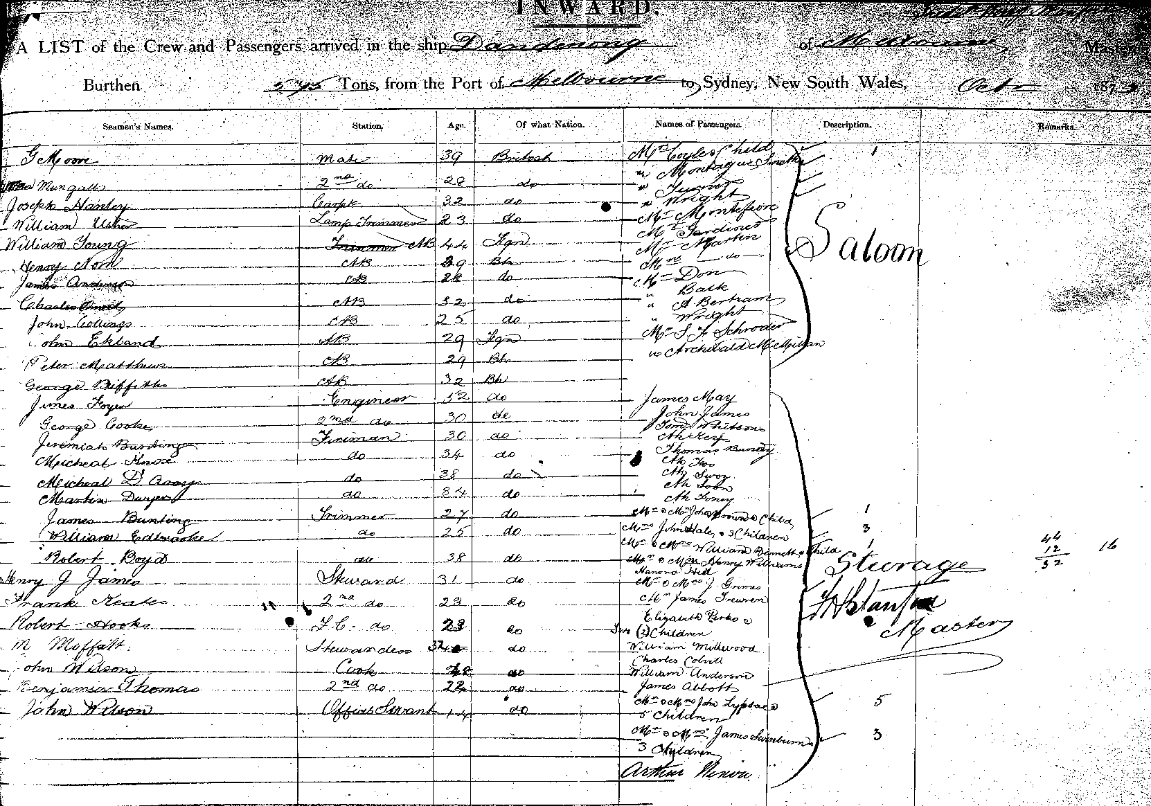 DANDENONGOF MELBOURNE, F.H. STANFORD MASTER, BURTHEN 575 TONS FROM THE PORT OF MELBOURNE TO SYDNEY, NEW SOUTH WALES, OCTOBER 1875 |