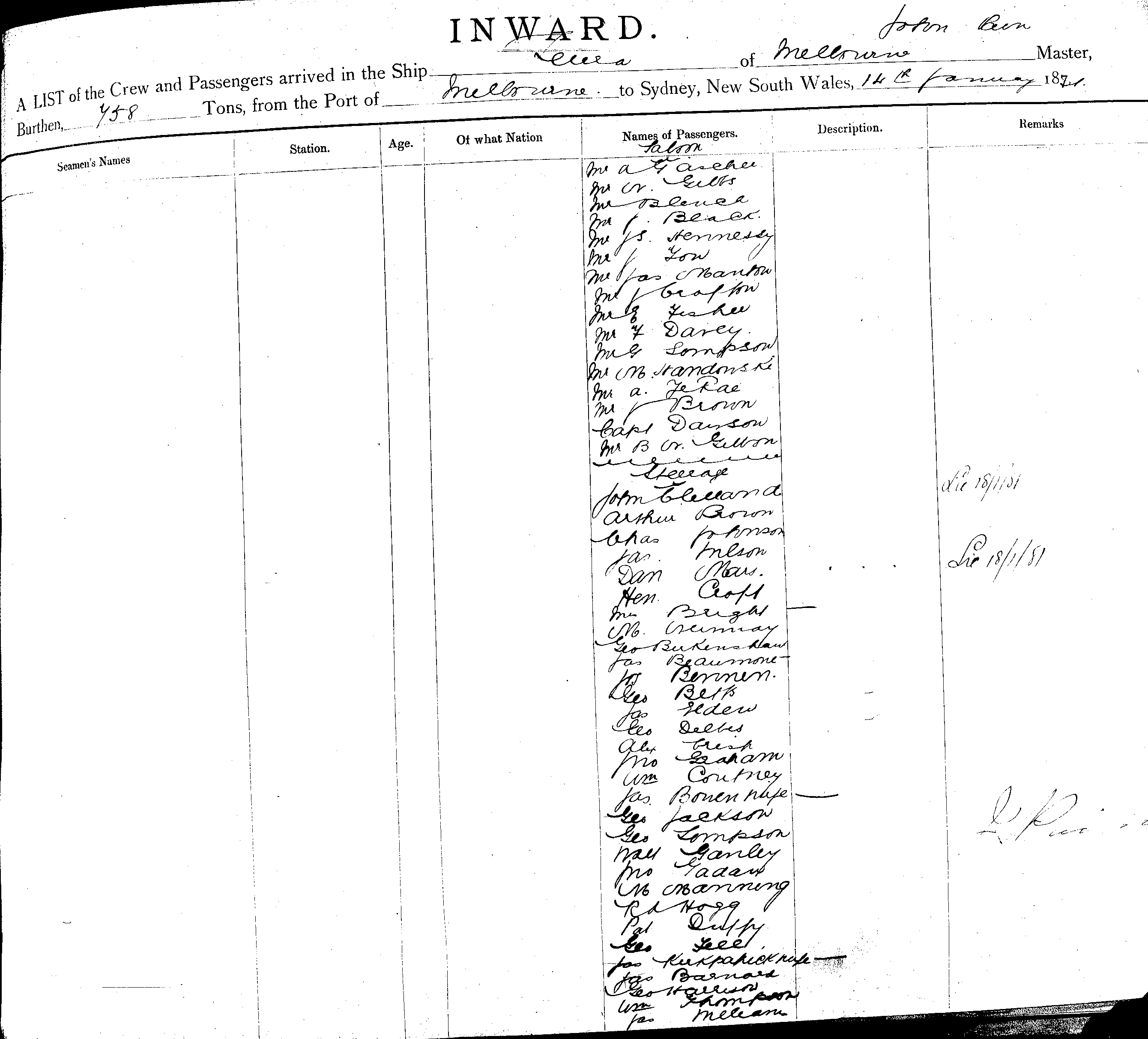 LEURAOF MELBOURNE, JOHN PAIN, MASTER, BURTHEN 758 TONS, FROM THE PORT OF MELBOURNE TO SYDNEY, NEW SOUTH WALES, 14TH JANUARY1881 |