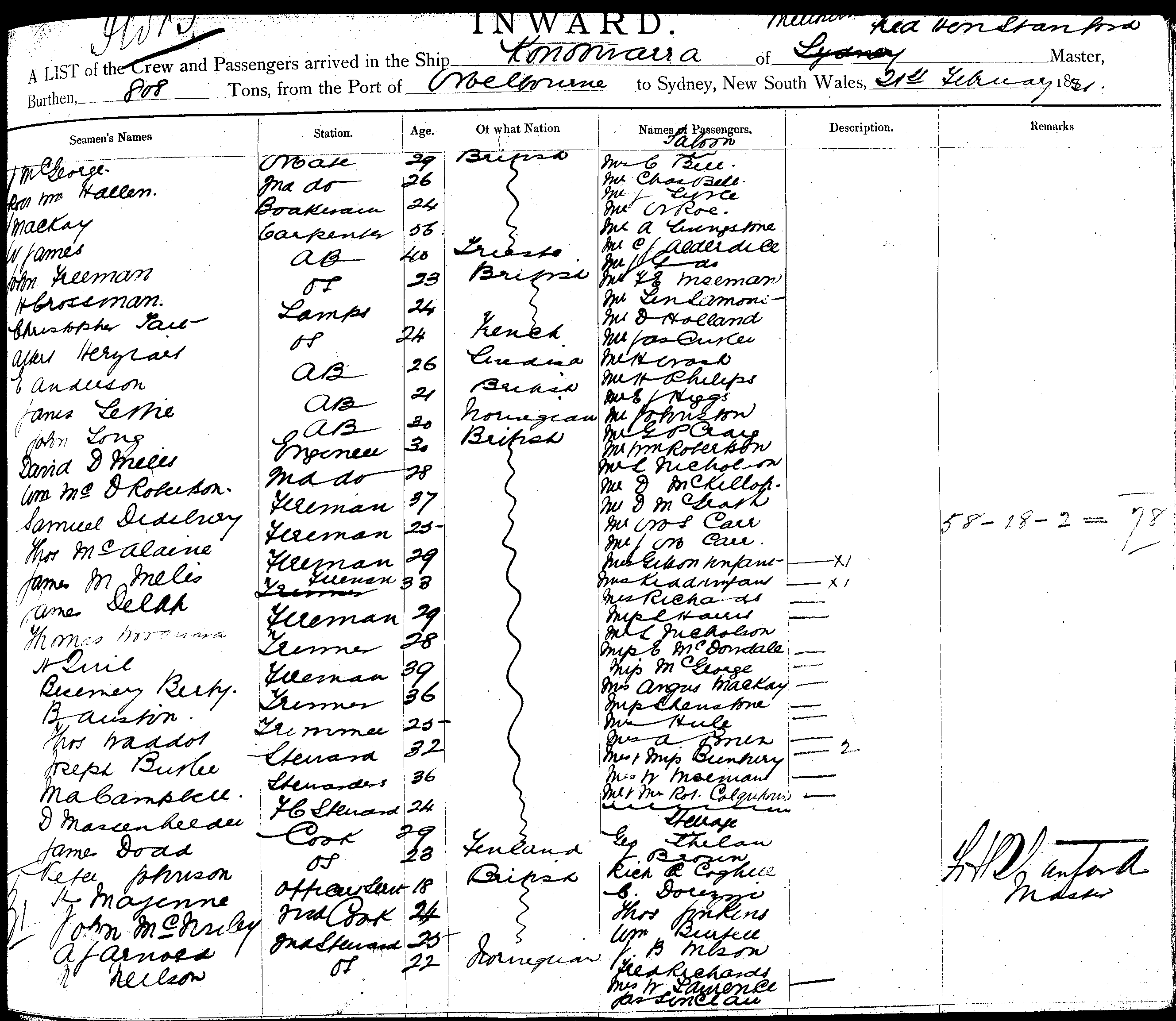 KONOOWARRAOF MELBOURNE, FRED HEN. STANFORD, MASTER, BURTHEN 808 TONS FROM THE PORT OF MELBOURNE, TO SYDNEY, NEW SOUTH WALES, 21ST FEBRUARY, 1881 |