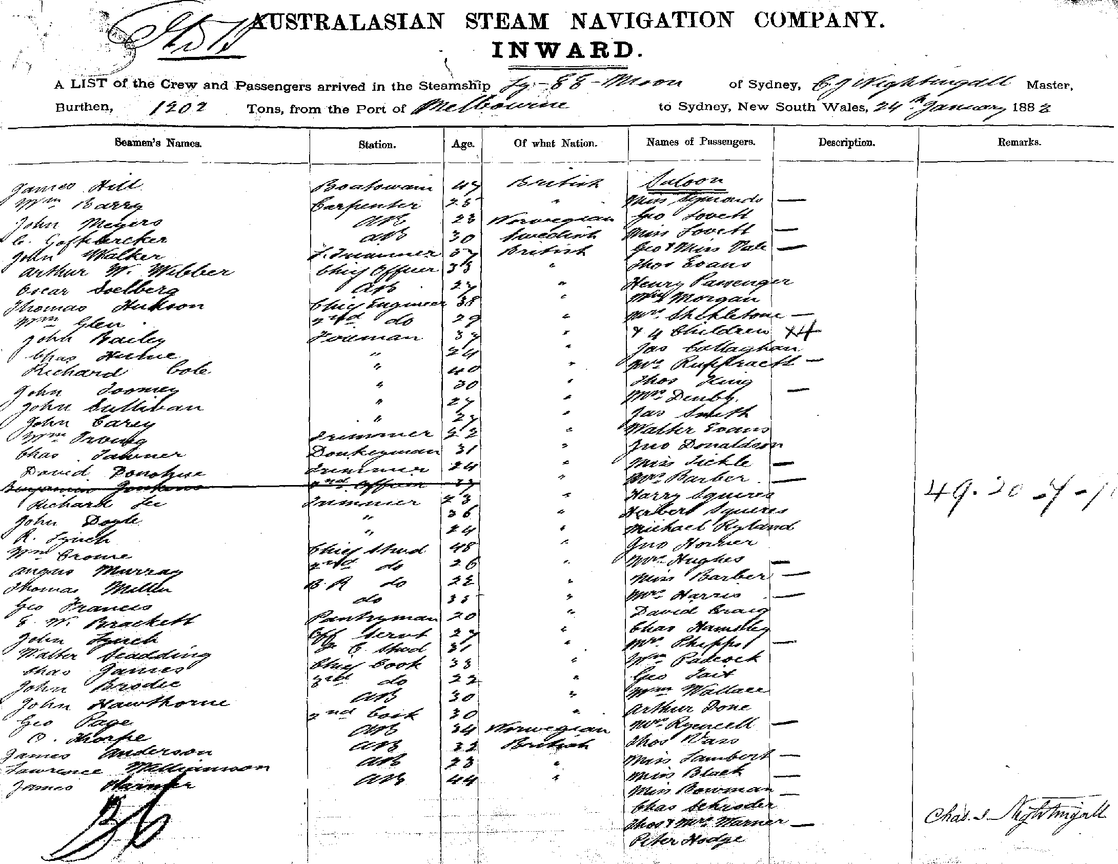 OF MELBOURNE TO SYDNEY, NEW SOUTH WALES, 24TH JANUARY 1882 |