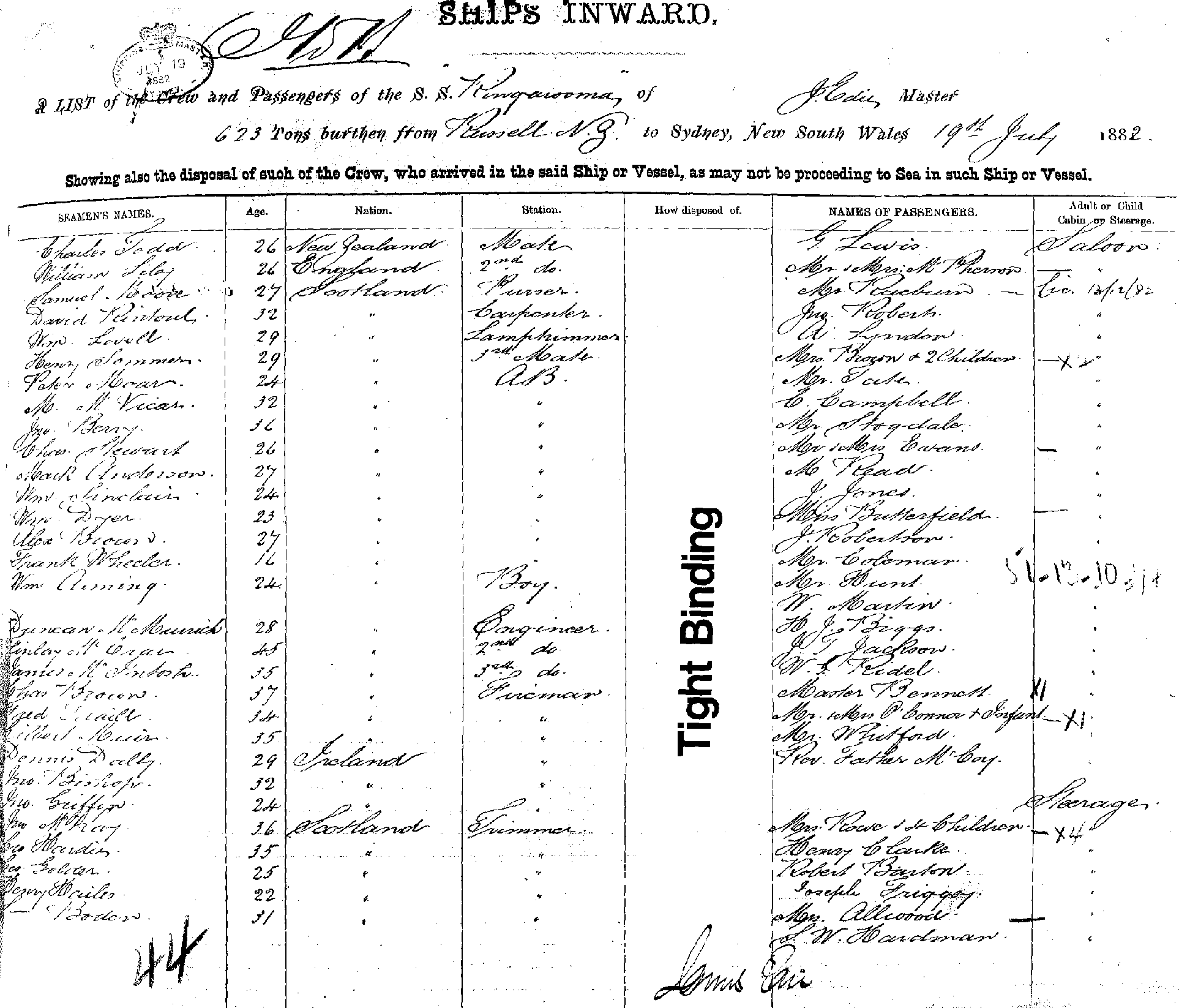 RINGAROOMAOF , JAMES EDIE, MASTER, BURTHEN 623 TONS FROM THE PORT OF RUSSELL N. Z. TO SYDNEY, NEW SOUTH WALES, 19TH JULY 1882 |