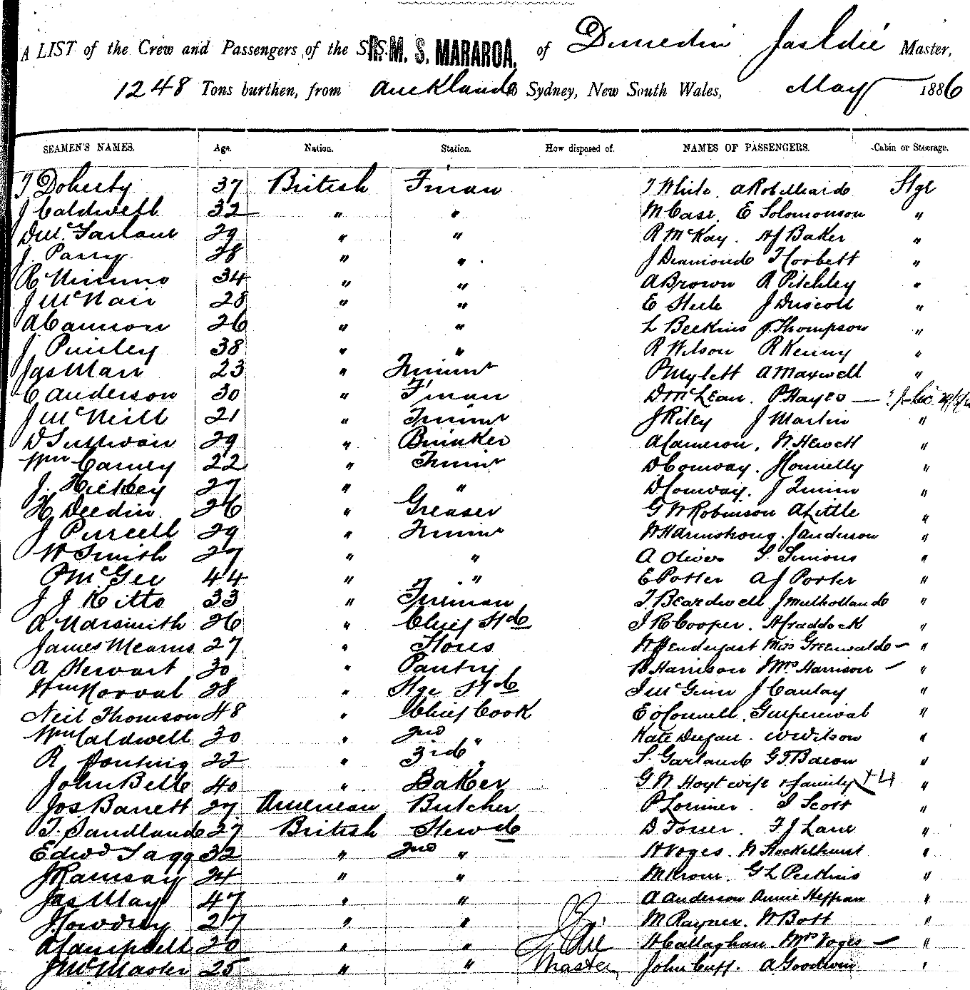 MARAROAR. M. S. OF DUNEDIN, JAS EDIE, MASTER, BURTHEN 1248 TONS FROM THE PORT OF LONDON TO SYDNEY, NEW SOUTH WALES, MAY, 1886 |
