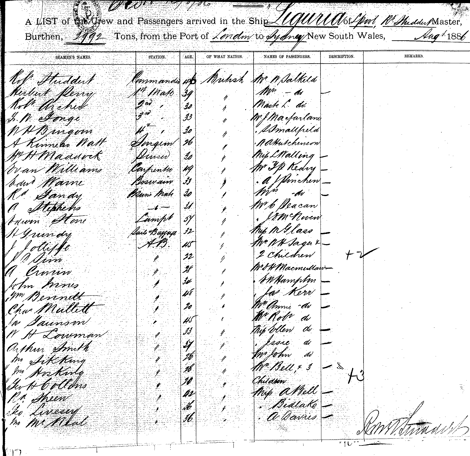 LIGURIAOF LIVERPOOL, ROBERT STUDDERT MASTER, BURTHERN 2992 TONS FROM THE PORT OF LONDON TO SYDNEY , NEW SOUTH WALES, AUGUST 1886 |