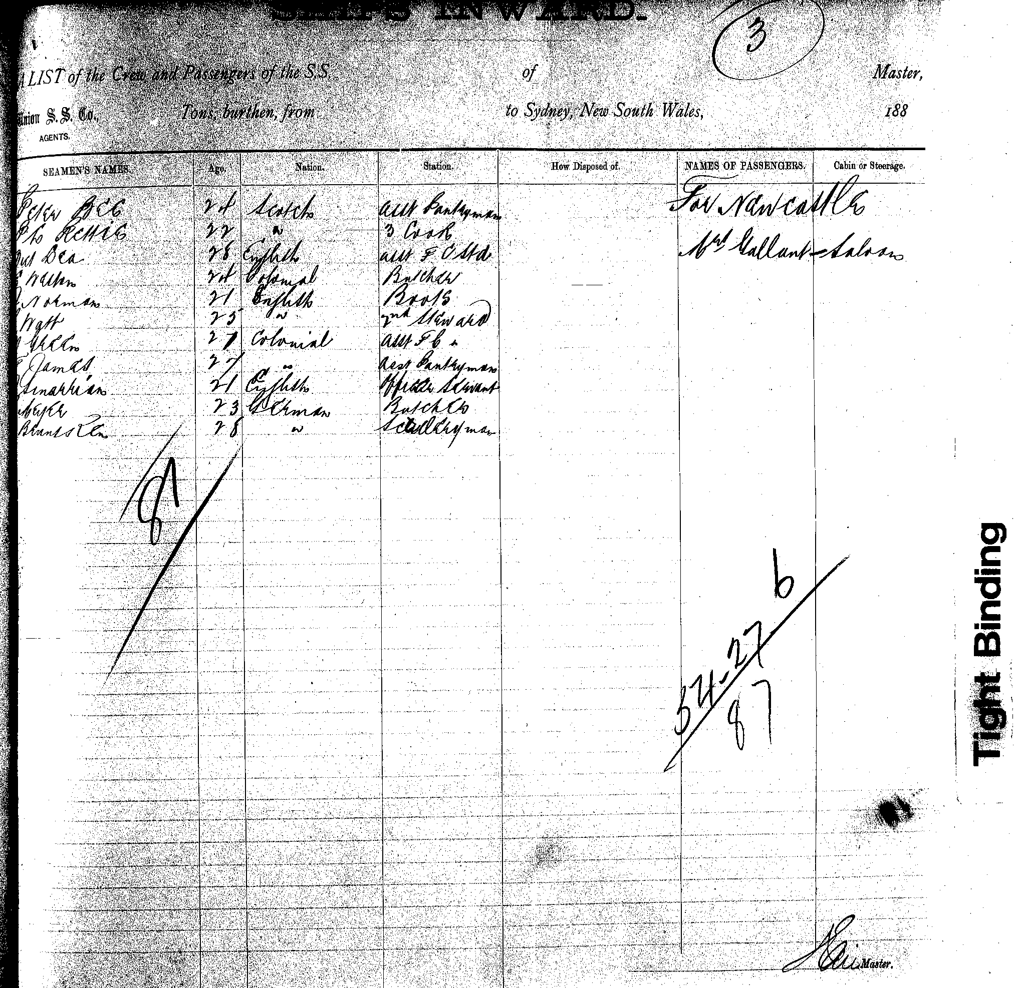MARAROAOF DUNEDIN, JAS EDIE, MASTER, BURTHEN 1248 TONS FROM THE PORT OF AUCKLAND TO SYDNEY, NEW SOUTH WALES, JANUARY 1887 |