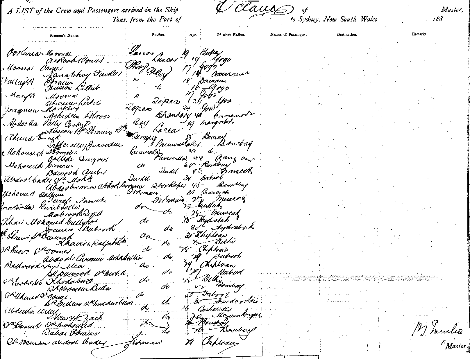GUNGAOF SYDNEY, D CALDER, MASTER, BURTHEN 1257 TONS FROM THE PORT OF FIJI TO SYDNEY, NEW SOUTH WALES, 25 AUGUST, 1888 |