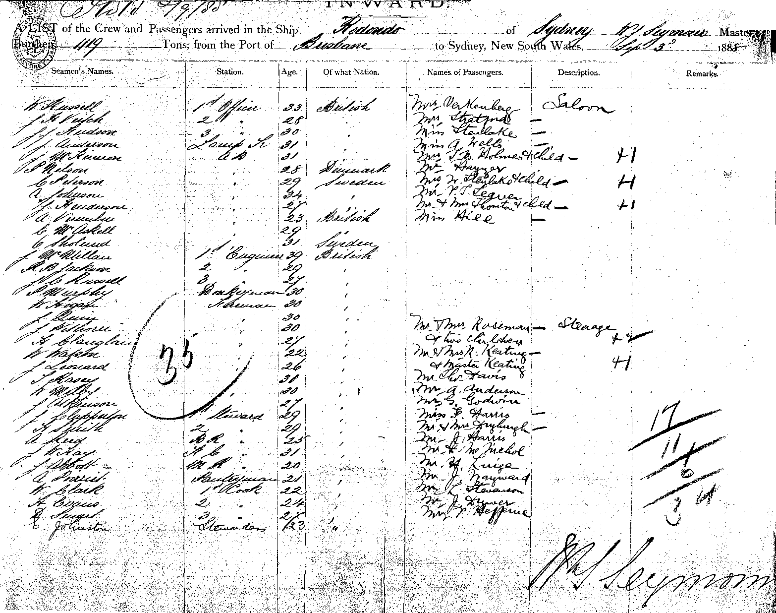 RODONDOOF SYDNEY, W J SEYMOUR MASTER, BURTHEN 1119 TONS FROM THE PORT OF BRISBANE, TO SYDNEY, NEW SOUTH WALES, S3RD EPT. 1888 |