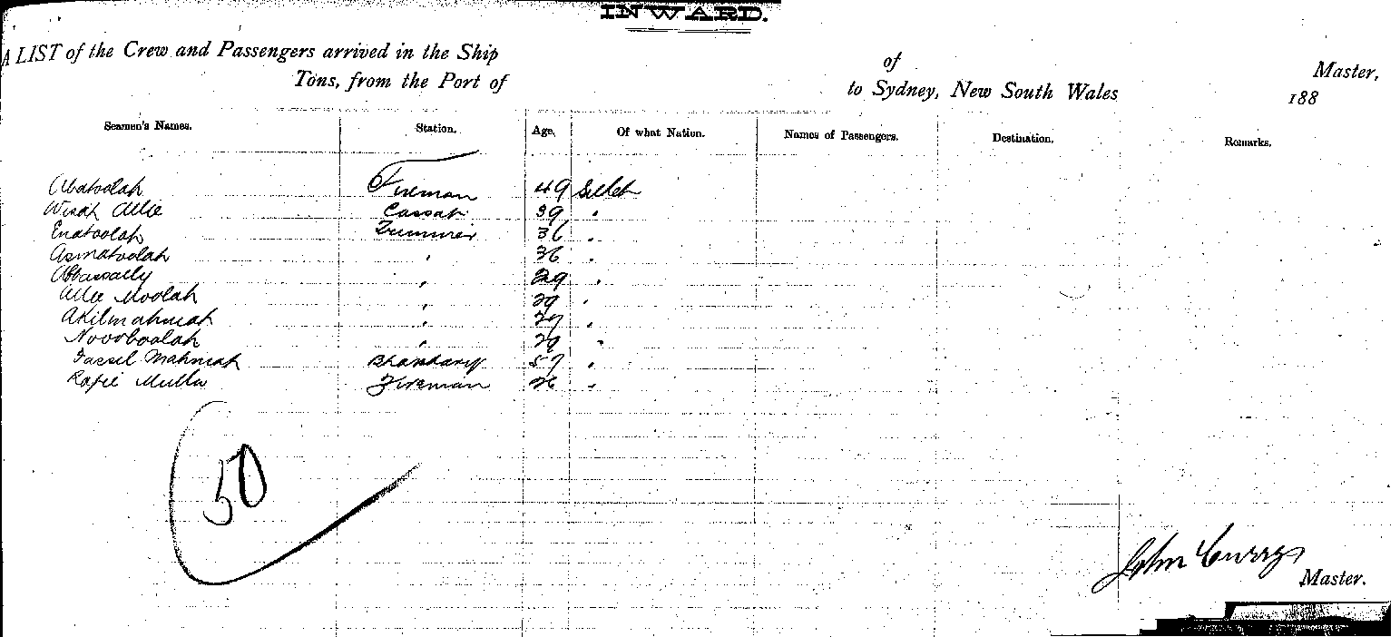 CLITUSOF MELBOURNE, JOHN CURRY, MASTERBURTHEN 1587 TONS FROM THE PORT OF JAVA TO SYDNEY NEW SOUTH WALES, 14TH MAY 1889 |