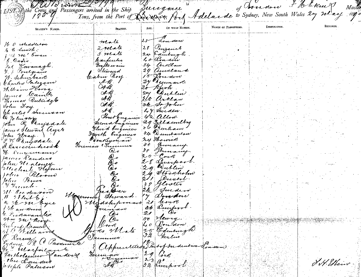 BUNGAREEOF LONDON, F. H. EKINS, MASTER, BURTHEN 1859 TONS FROM PORT ADELAIDE TO SYDNEY, NEW SOUTH WALES, 27TH MAY 1890 |