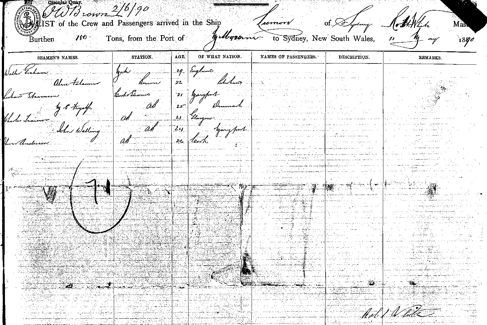 LISMOREOF SYDNEY, ROBT. WHITE, MASTER, BURTHEN 180 TONS FROM THE PORT OF MELBOURNE TO SYDNEY, NEW SOUTH WALES, 31ST MAY 1890 |