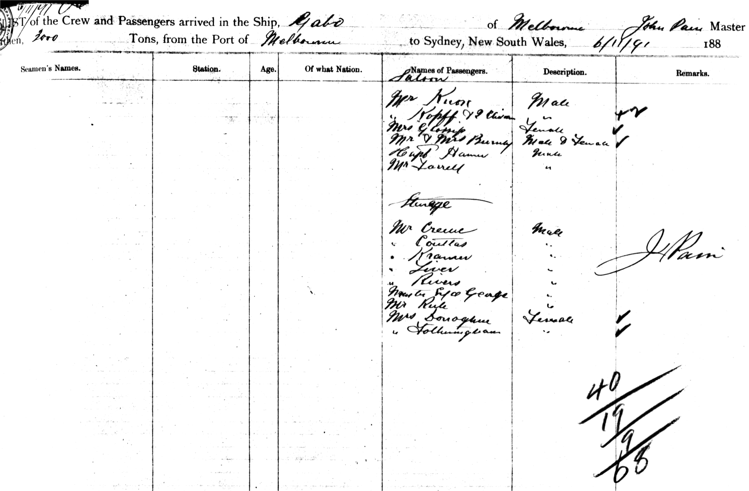 Source: State Records Authority of New South Wales: Shipping Master's Office; Passengers Arriving 1855 - 1922; NRS13278, [X214] reel 506. Transcribed by