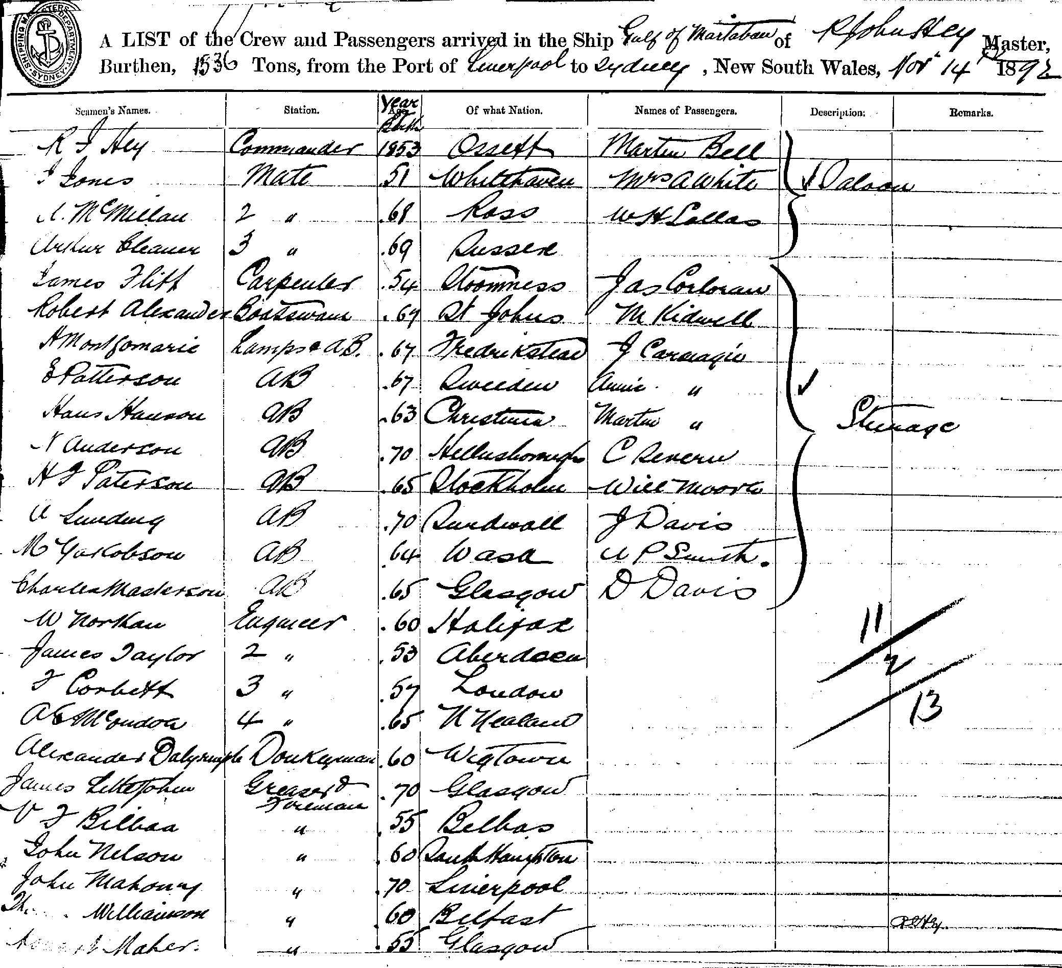 GULF OF MARTABANOF ?, R JOHN HEY, MASTER, BURTHEN 1536 TONS FROM THE PORT LIVERPOOL TO SYDNEY, NEW SOUTH WALES, 14 NOVEMBER 1892 |
