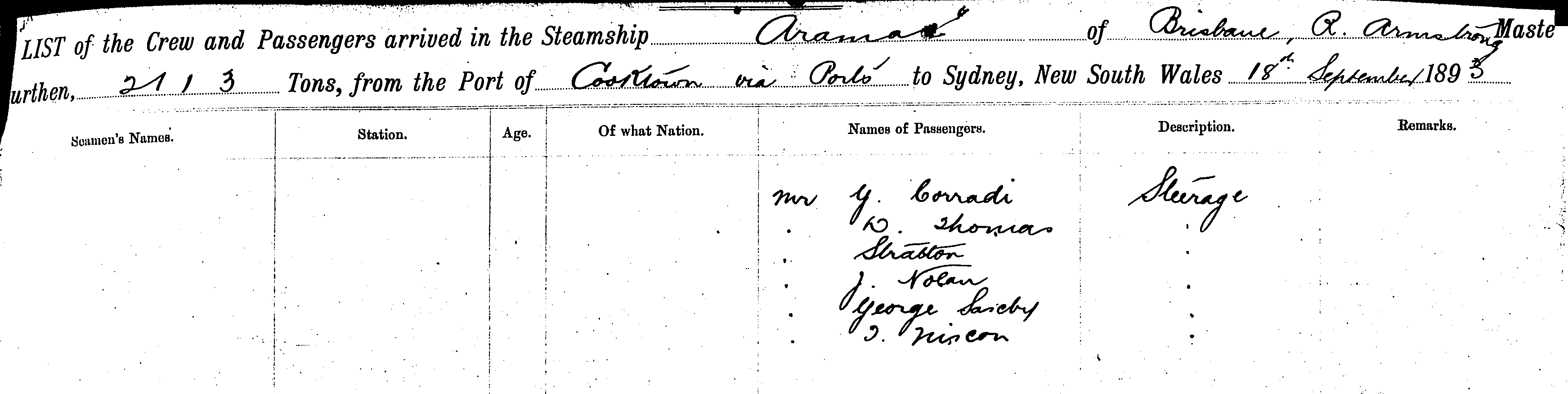ARAMACOF BRISBANE, R ARMSTRONG, MASTER, BURTHEN 2113 TONS FROM THE PORT OF COOKTOWN TO SYDNEY, NEW SOUTH WALES, 18TH SEPTEMBER 1893 |