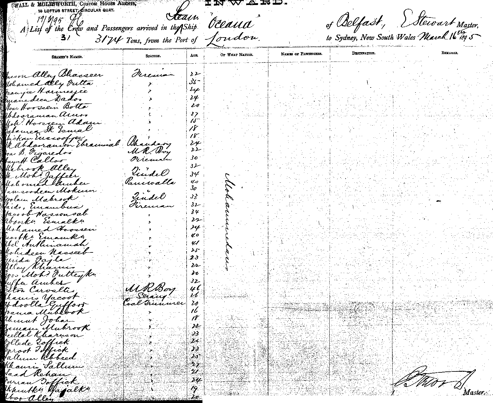 OCEANAOF BELFAST, E STEWART, MASTER, BURTHEN 3174 TONS FROM THE PORT OF LONDON TO SYDNEY, NEW SOUTH WALES, 16TH MARCH 1895 |