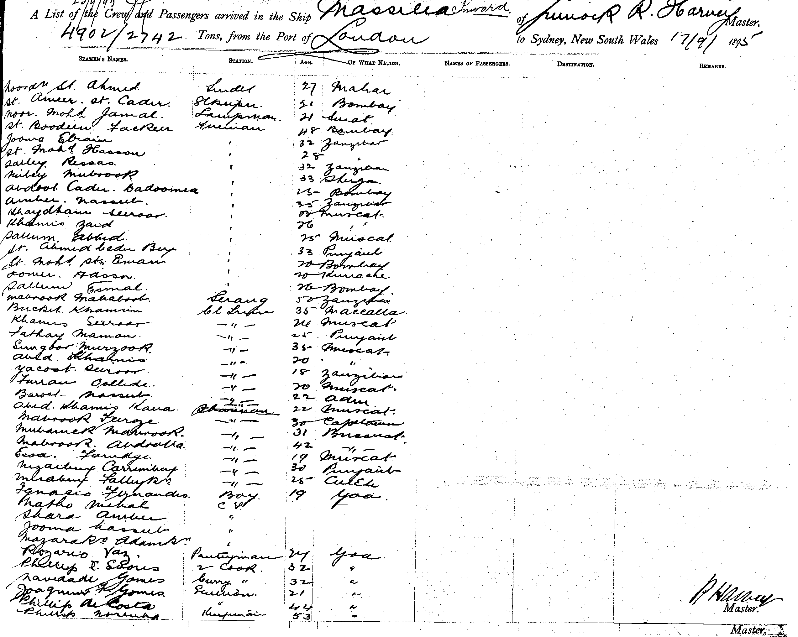 MASSILIAOF GREENOCK , P HARVEY, MASTER, BURTHEN 4902/2742 TONS FROM THE PORT OF LONDON TO SYDNEY, NEW SOUTH WALES, 17 SEPTEMBER, 1895 |