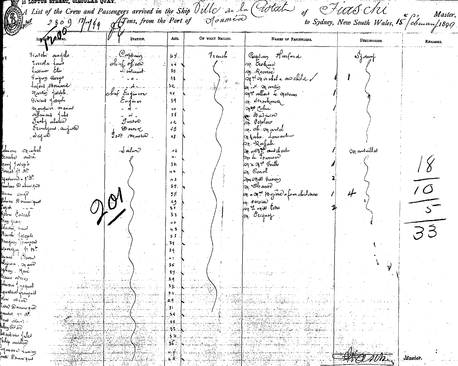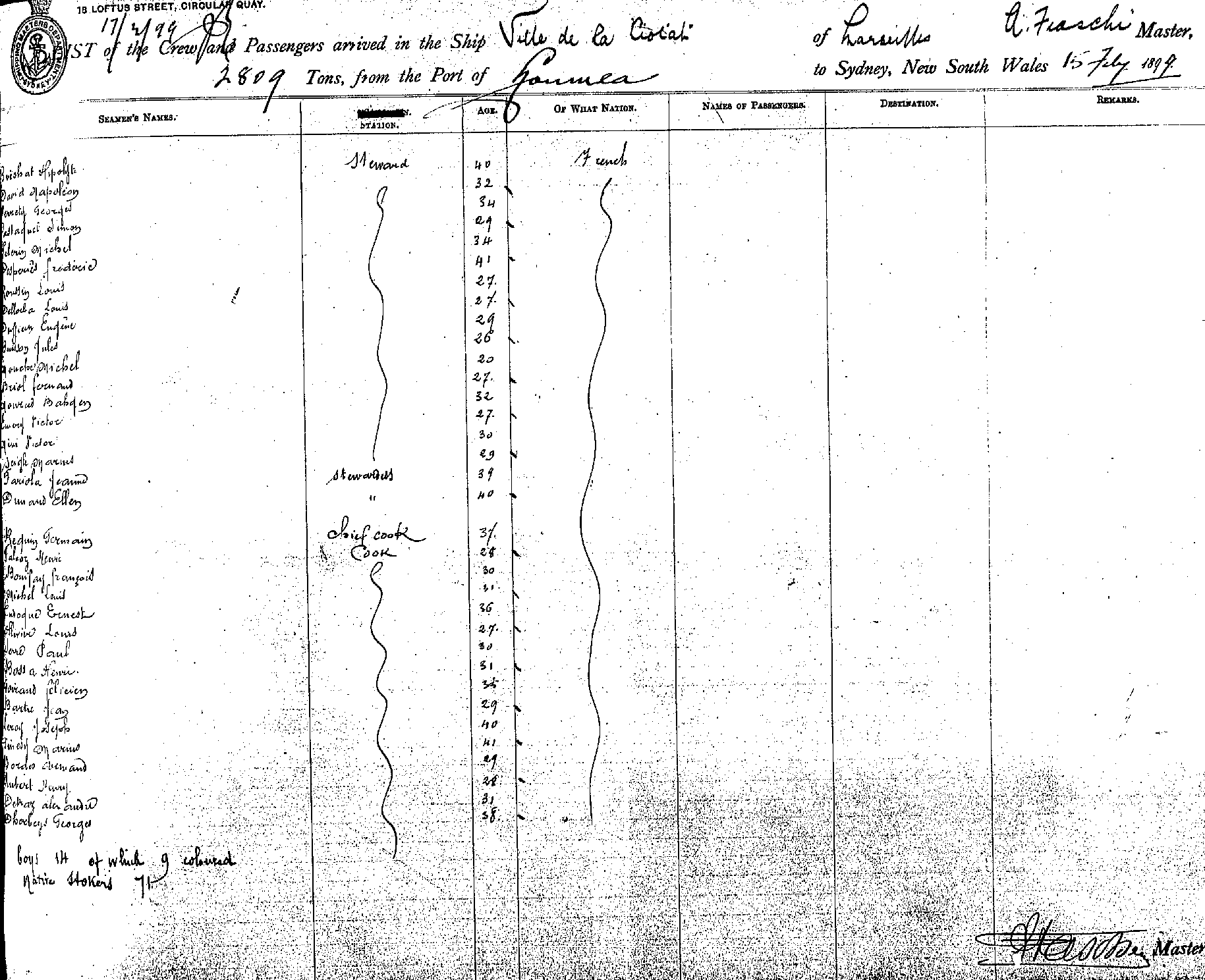 VILLE DE LA CIOTATOF MARSEILLES, ANGELO FIASCHI, MASTER, BURTHEN 2809 TONS FROM THE PORT OF NOUMEA TO SYDNEY, NEW SOUTH WALES, 15TH FEBRUARY, 1899 |
