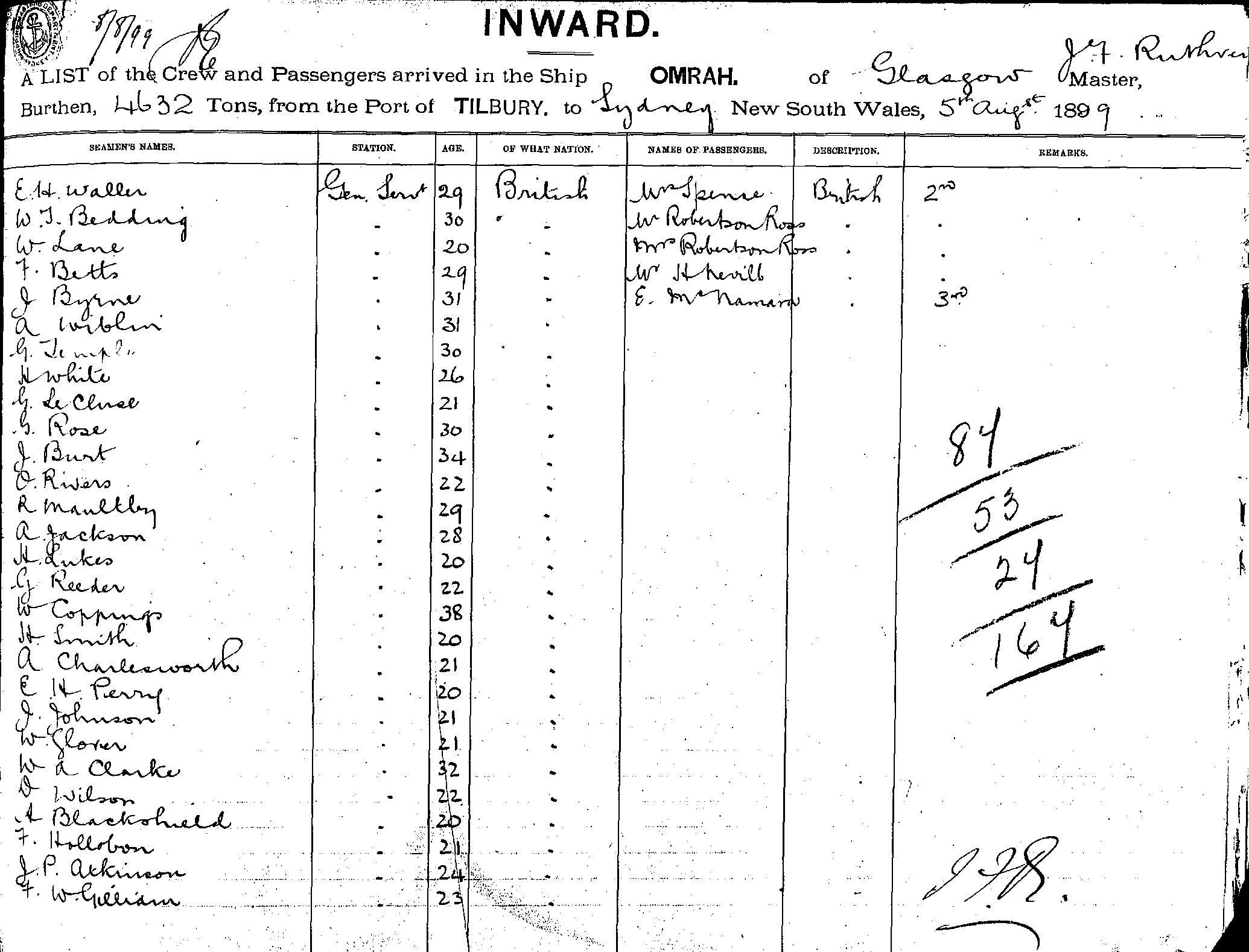 Source: State Records Authority of New South Wales: Shipping Master's Office; Passengers Arriving 1855 - 1922; NRS13278, [X260] reel 552. Transcribed by Nerryle Scriven.