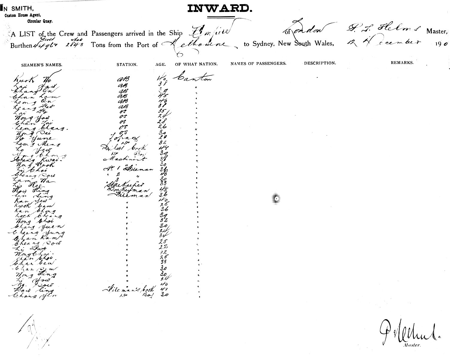 EMPIREOF LONDON, P. T HELMS, MASTER, BURTHEN 4496/2843 TONS, FROM THE PORT OF MELBOURNE TO SYDNEY, NEW SOUTH WALES, 16TH SEPTEMBER 1904 |