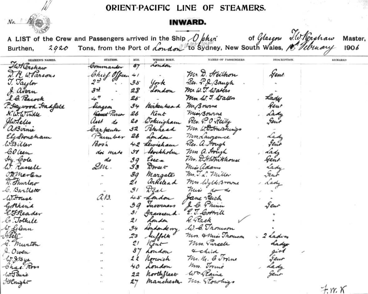 OF GLASGOW, F W KERSHAW, MASTER, BURTHEN 2920 TONS FROM THE PORT OF LONDON via MELBOURNE TO SYDNEY, NEW SOUTH WALES, 10 FEBRUARY 1906