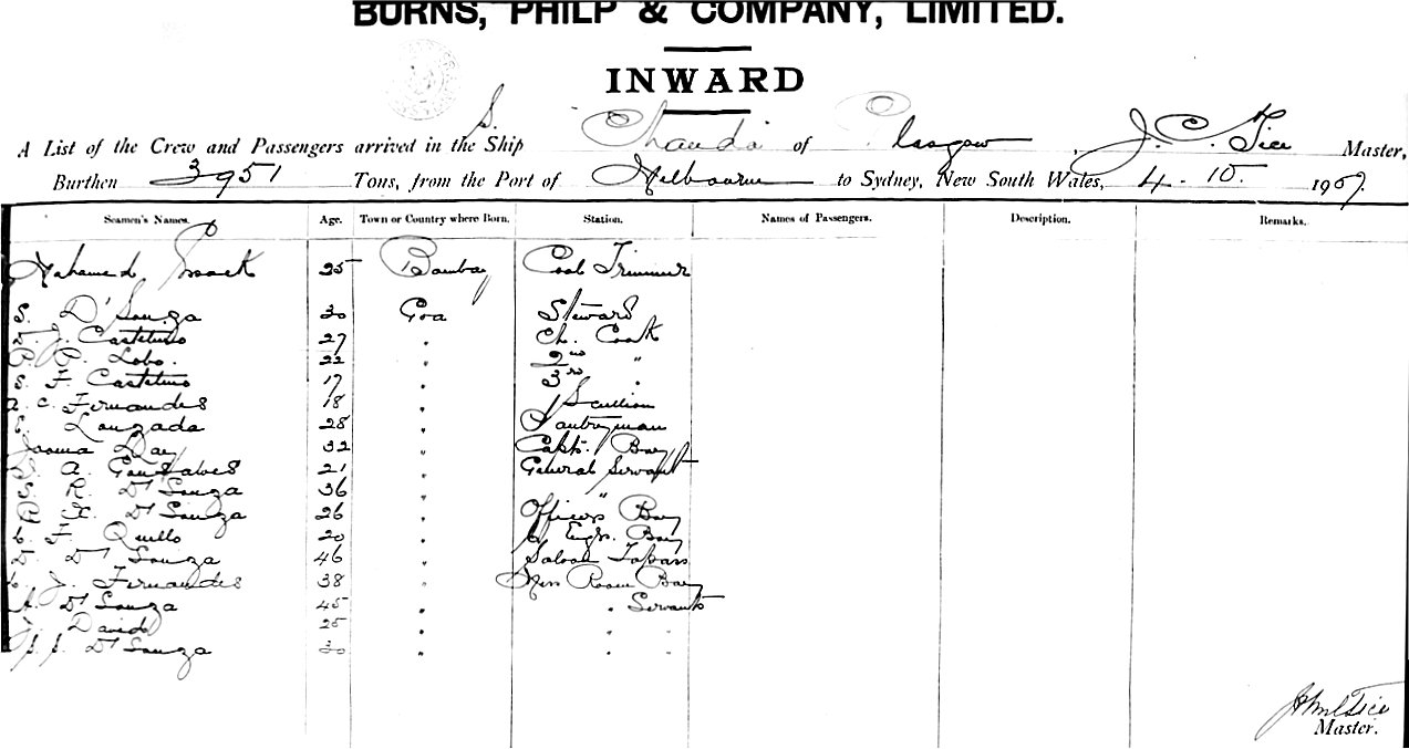 CHANDAOF GLASGOW, J C TICE, MASTER, BURTHEN 3951 TONS FROM THE PORT OF MELBOURNE TO SYDNEY, NEW SOUTH WALES, 4TH OCTOBER, 1907 |