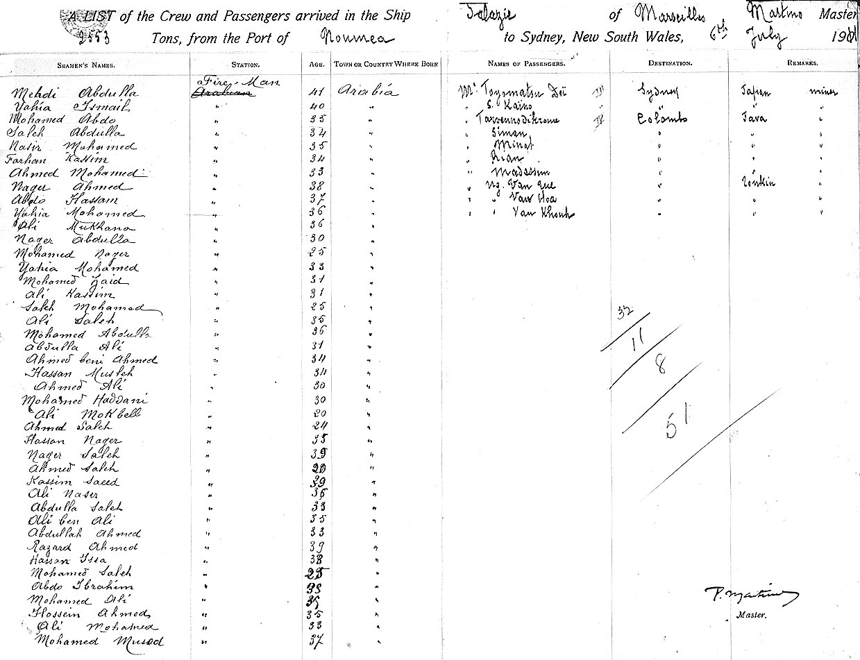 SALAZIEOF MARSEILLES, P. MARTINO, MASTER, BURTHEN 2553 TONS FROM THE PORT OF NOUMEA TO SYDNEY, NEW SOUTH WALES, 6TH JULY, 1911 |