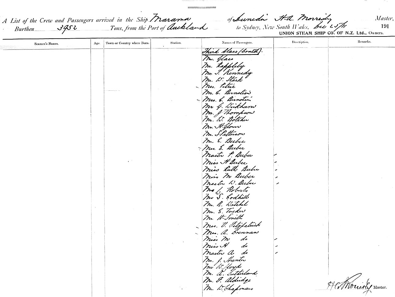 Source: State Records Authority of New South Wales: Shipping Master's Office; Passengers Arriving 1855 - 1922; NRS13278, [X358] reel 2061-2062. Transcribed by SusanR. Proofread by Lyn & Maurie.
